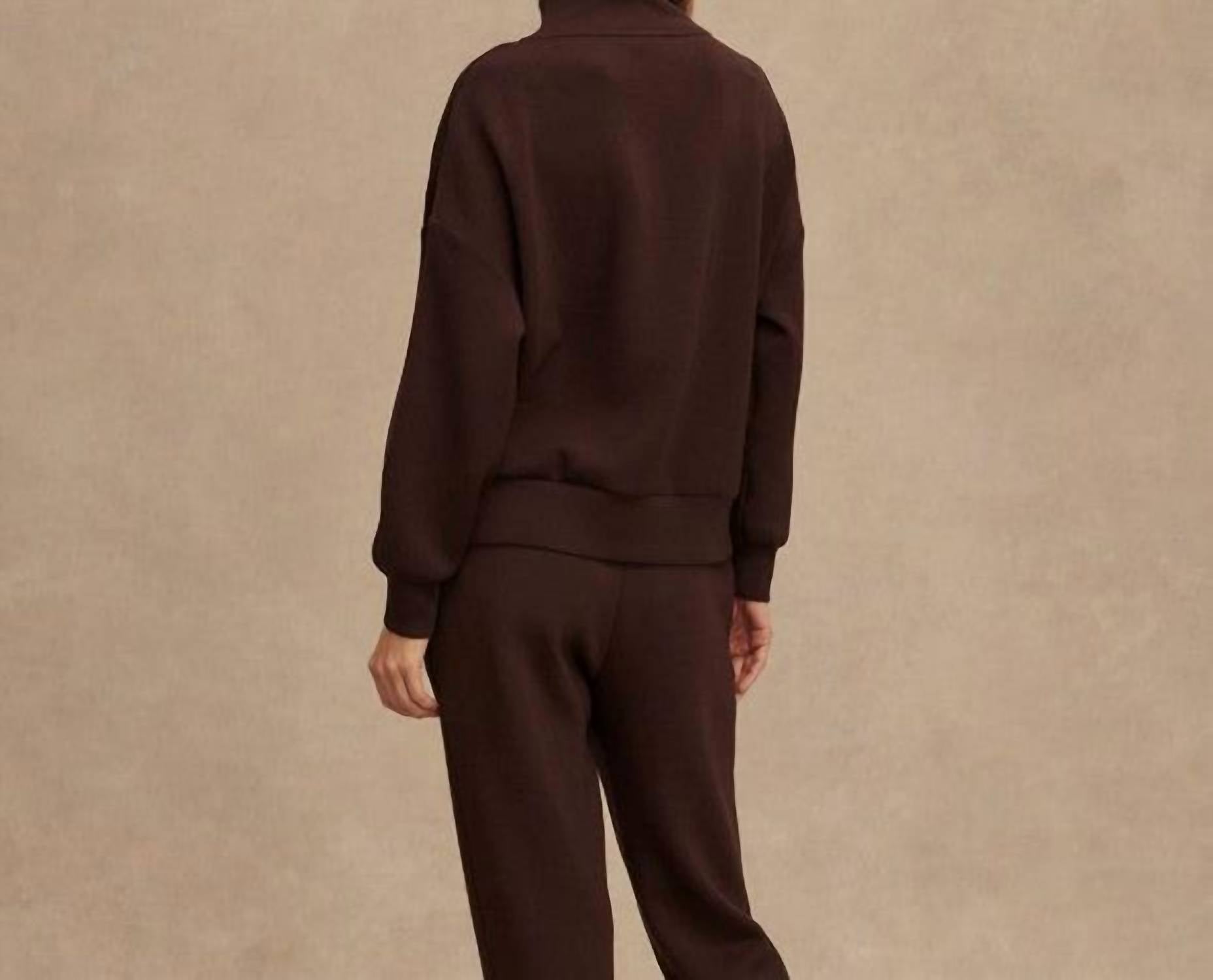 Elevate your fall wardrobe with the Hawley Half Zip Sweater by VARLEY, a chic piece in a rich Coffee Bean hue. This long sleeve, solid pattern sweater is crafted from a luxurious Viscose Blend, offering comfort and style. Closure is a convenient pull-on design with a distinctive panelled, half-zip neck for versatile styling. Care for this garment with a cool machine wash, and a cool iron; do not bleach or tumble dry, and dry flat for best results.