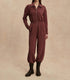 Experience chic comfort in the Jessie Zip Front Jumpsuit by VARLEY, crafted from the luxurious DoubleSoft® fabric. This cinnamon-hued jumpsuit features a relaxed fit with dropped shoulders and a practical front zip closure that offers versatile styling. Composition: 81% Viscose, 15% Polyester, 4% Elastane. Care: Machine wash cool, iron on low, line dry – fasten zips before washing.