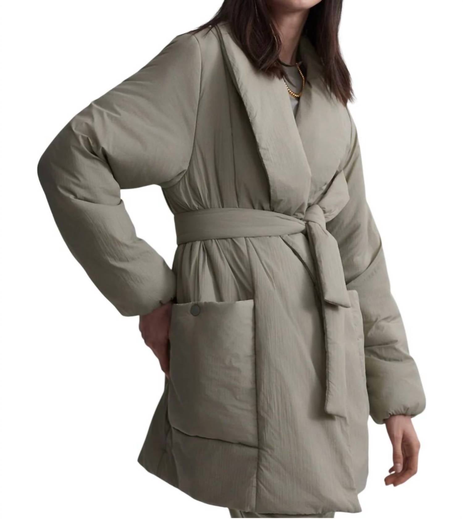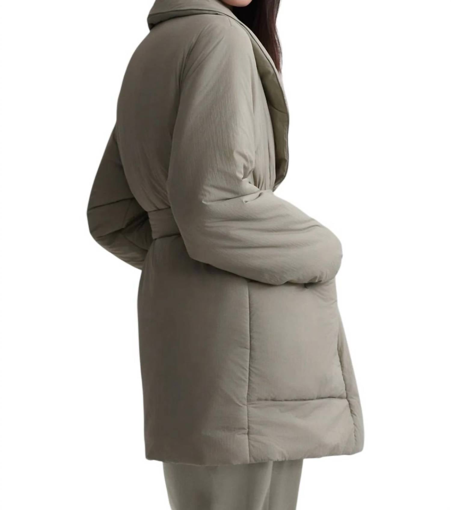 Temperaturas mais amenas significam jaquetas puffer fofas e esta é uma das favoritas dos fãs. Eleve seu guarda-roupa de inverno com a Jaqueta Laona Padded Wrap da Varley, uma mistura perfeita de estilo e funcionalidade em um elegante tom Sage. Confeccionada em 100% nylon, esta jaqueta de manga comprida apresenta um design acolchoado que oferece aquecimento sem volume, tornando-a ideal para viagens e streetwear. Com bolsos práticos e gola clássica, ela une forma e utilidade perfeitamente. Cuidados: Lavar à máquina.