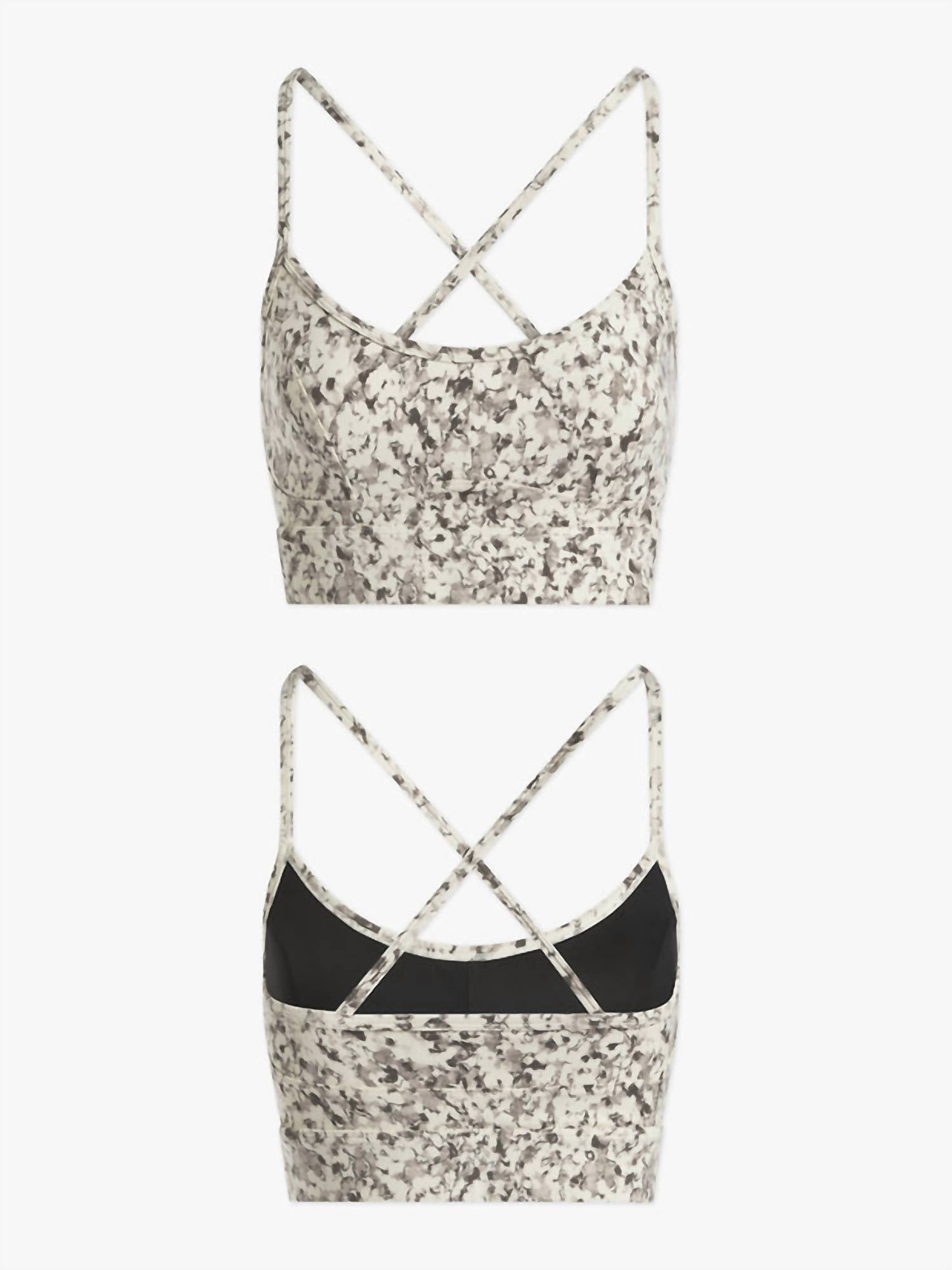 Feito em nosso tecido Lets Move, macio e de alta performance, este sutiã charmoso e sem bojo oferece excelente gerenciamento de umidade e respirabilidade. Modelo nº VAR00826. 75% poliéster reciclado, 25% elastano. Lavar à máquina com água fria e cores semelhantes, não usar alvejante. Pendurar ou estender para secar, não usar alvejante, não secar na secadora. Não passar a ferro. Não lavar a seco. A modelo do estúdio tem 178 cm de altura, 84 cm de busto, 64 cm de cintura, 94 cm de quadril e veste tamanho pequeno.