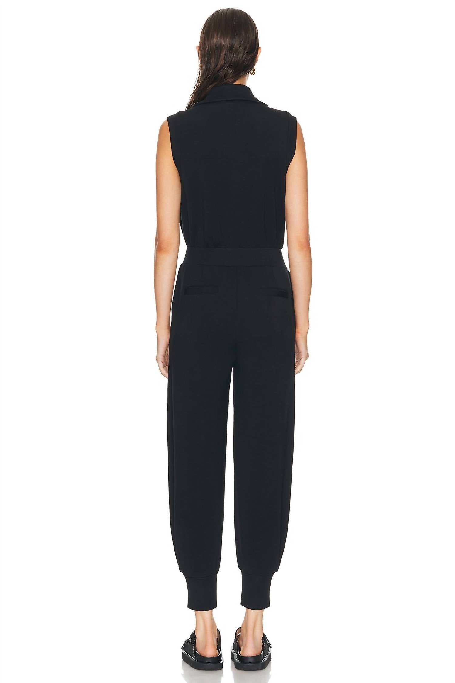 Não é preciso muito para que esta peça fique descolada sem esforço. Adicione algumas joias chamativas para dar um toque especial ou calce tênis para um visual mais casual. Eleve seu guarda-roupa com o Macacão Madelyn da VARLEY, uma escolha estilosa tanto para relaxar quanto para sair. Este macacão preto sem mangas possui fecho frontal com zíper e gola alta, com pernas afuniladas e bolsos práticos para maior praticidade. Confeccionado em uma mistura de 72% viscose, 23% poliéster e 5% elastano, ele promete conforto e respirabilidade, mantendo um caimento aerodinâmico. Cuide dele facilmente com as instruções de lavagem à máquina e secagem na horizontal, garantindo que continue sendo sua peça versátil e indispensável.