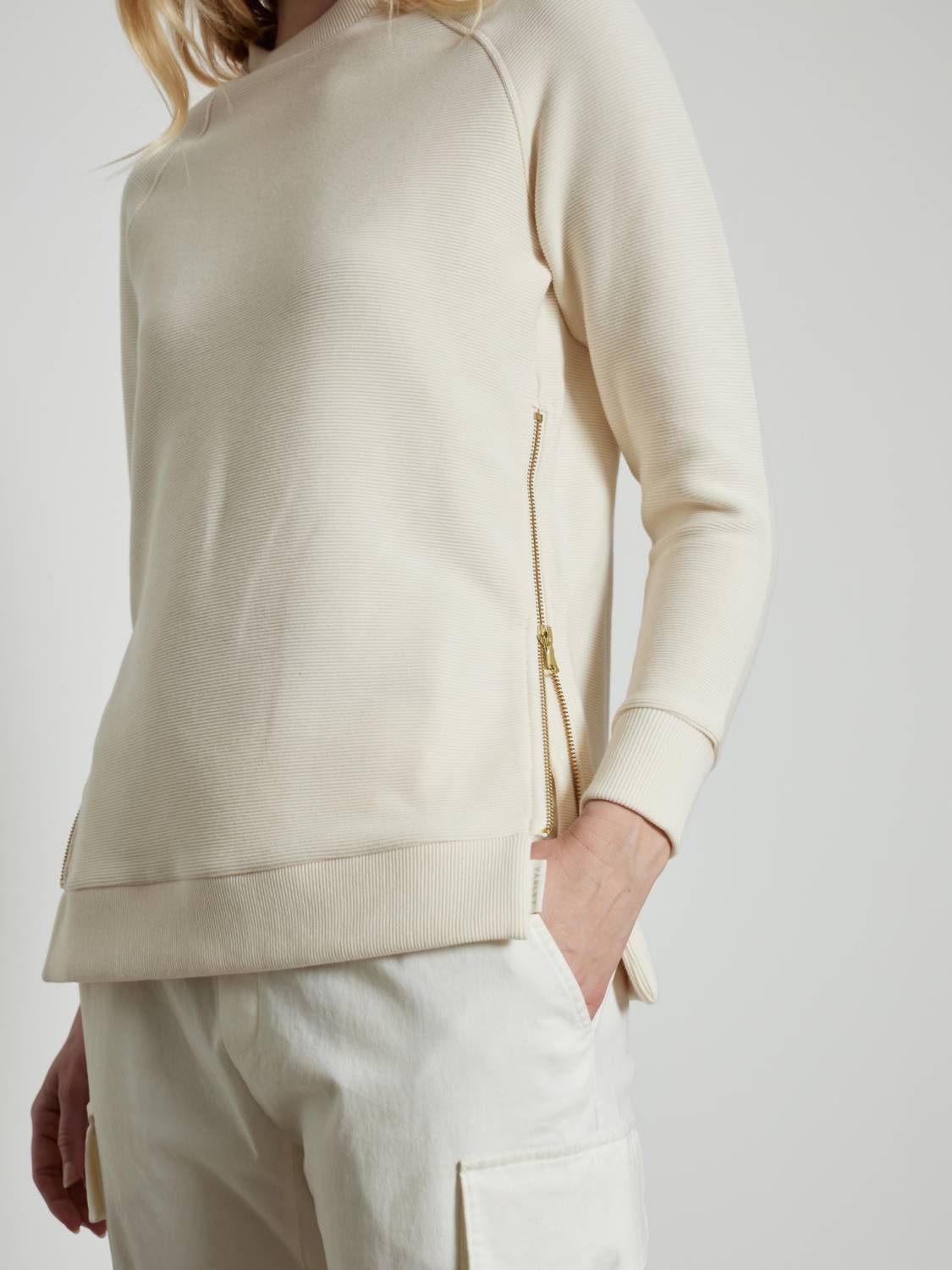 Não importa se você está correndo pela cidade ou relaxando em casa, este moletom serve para ambos. Apresenta bainha longa e caída nas costas para maior cobertura e zíper lateral para ajuste. 53% algodão, 46% poliéster, 1% elastano. Lavar à máquina com água fria e cores semelhantes, não usar alvejante. Pendurar ou deixar secar na horizontal, não secar na secadora. Passar a ferro em temperatura baixa. Não lavar a seco.