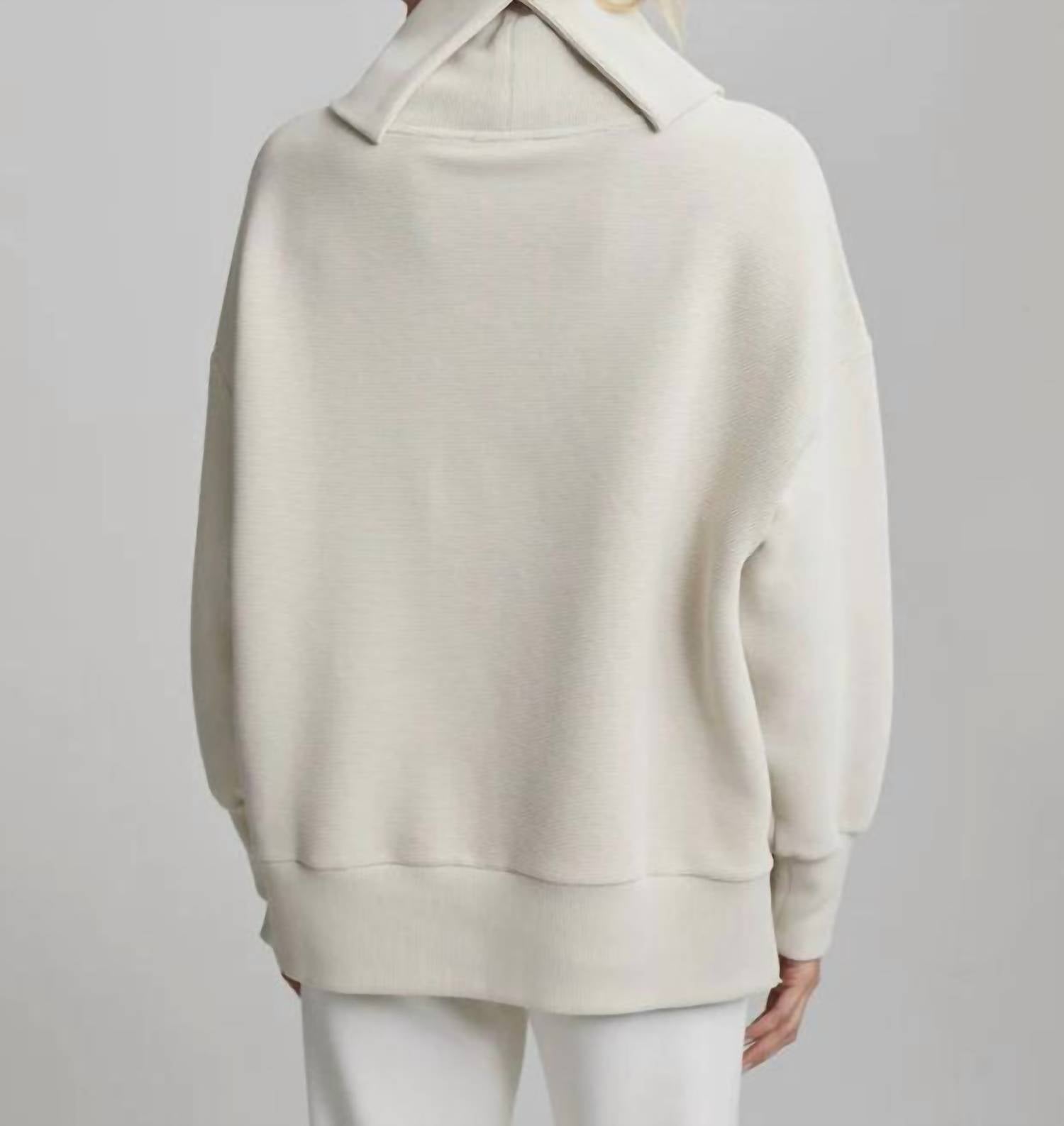 Discover the Milton Sweat by VARLEY, a perfect blend of comfort and style in Chateau Grey. Crafted from a cotton blend, this sweatshirt features bellowed long sleeves, side zip details, and a relaxed roll neck, embodying the essence of Scandi Style. Its oversized design and deep cuffs make it an ideal choice for winter evenings and Thanksgiving gatherings. Closure is secured with a side zip, and it is easy to care for with machine wash.