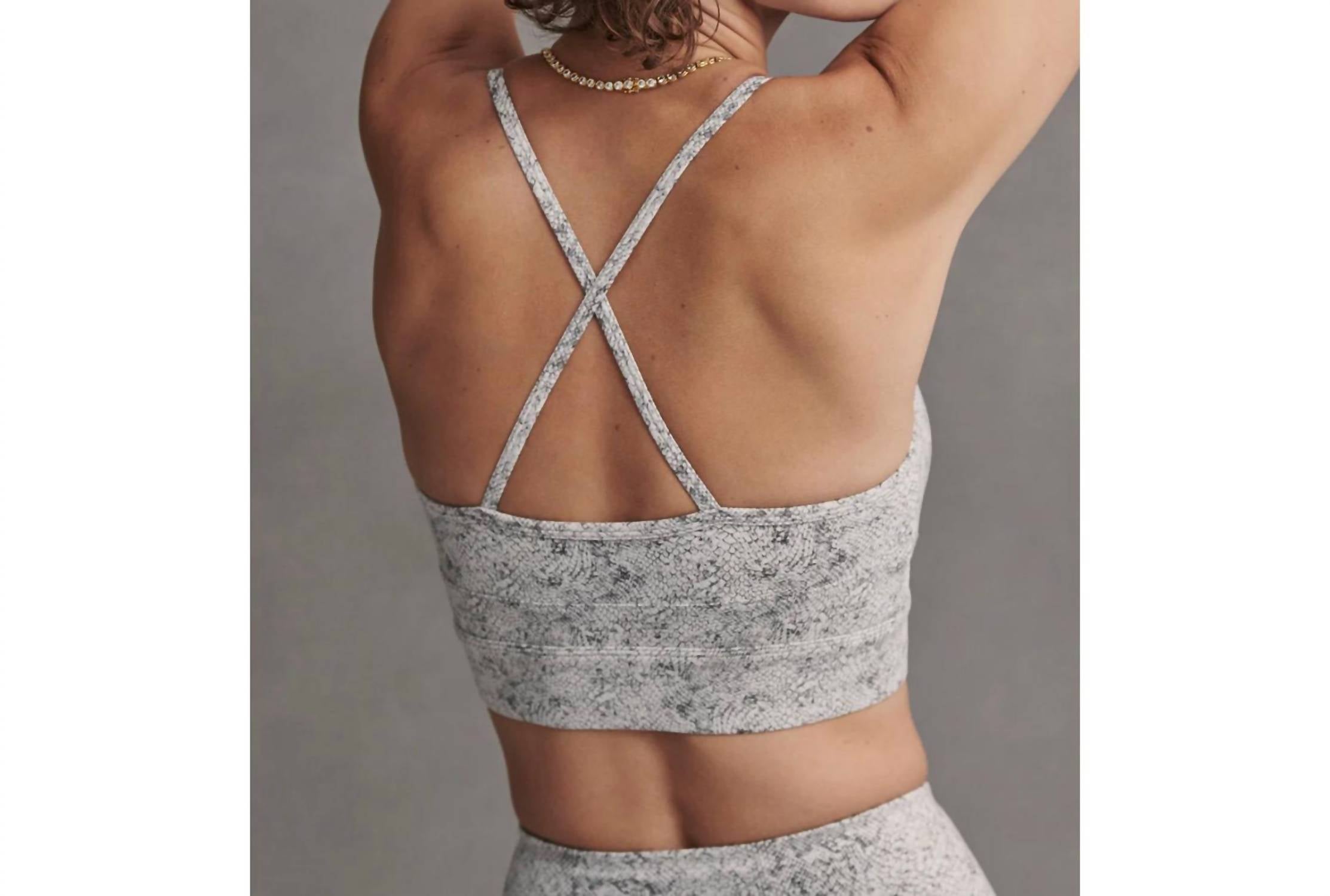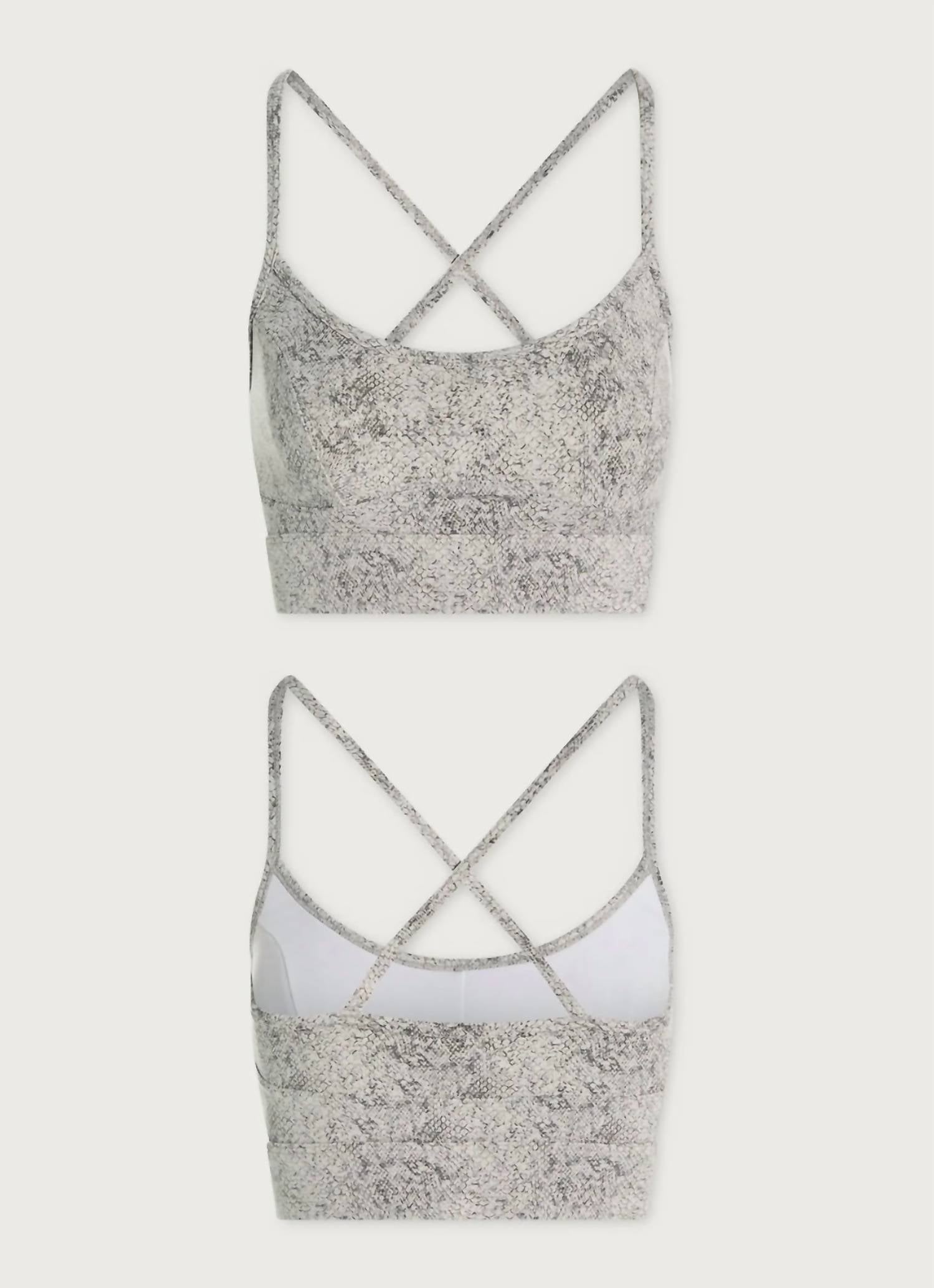 Um sutiã esportivo que tem tudo: estilo, funcionalidade e suporte. O Sutiã Move Irena da VARLEY na cor Ivory Textured Snake é a combinação perfeita de conforto e desempenho, projetado para mulheres ativas. Feito com 75% poliéster reciclado e 25% elastano, este sutiã esportivo oferece excelente gerenciamento de umidade e respirabilidade em um design macio e sem enchimento. Cuidados: Lavar à máquina com água fria e com cores semelhantes, não usar alvejante; pendurar ou secar na horizontal. Combine com calças combinando, disponíveis no mesmo tecido luxuoso, para um conjunto completo de treino.