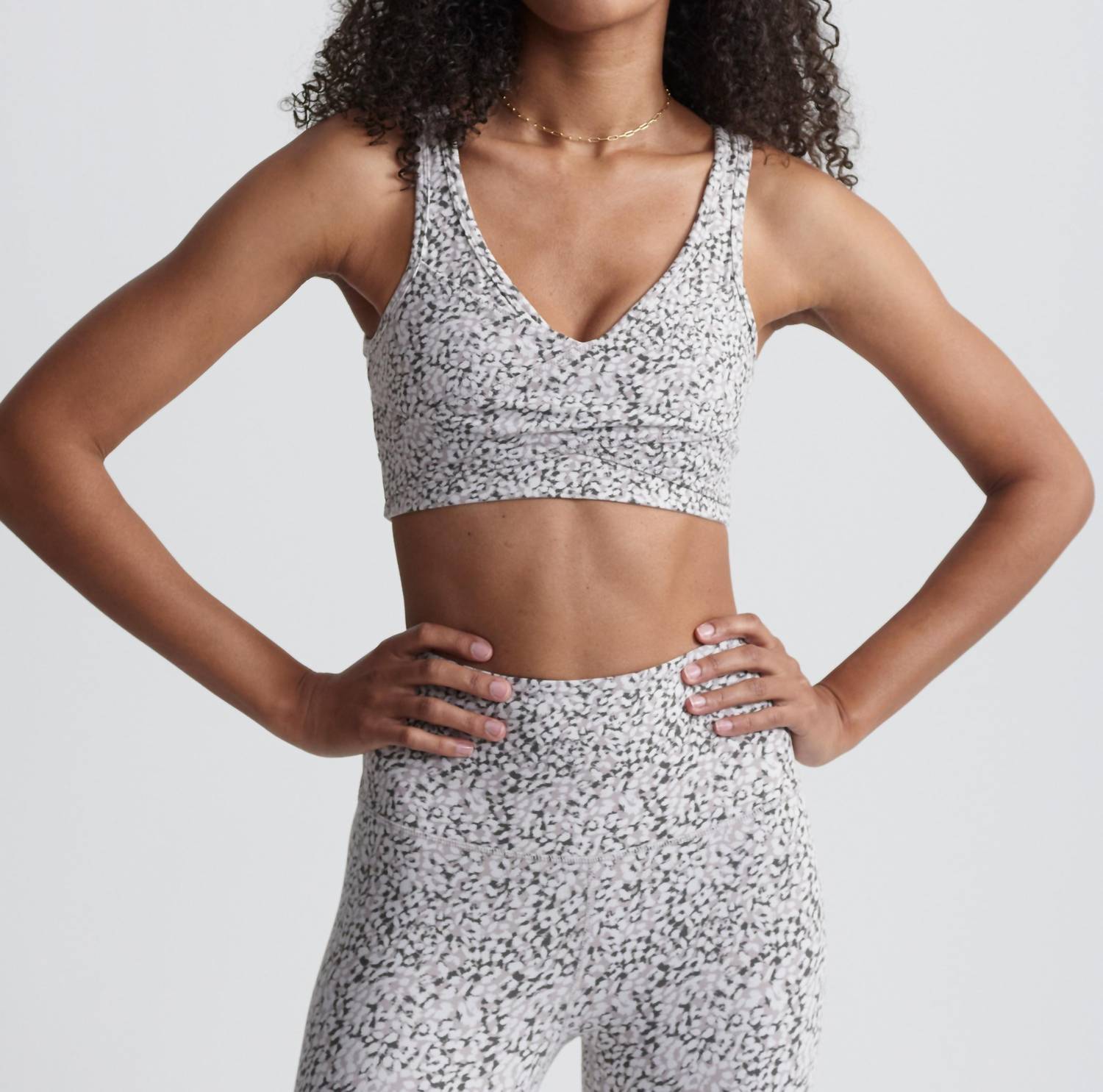Apresentamos o Sutiã Move Kellam da VARLEY com a marcante estampa Mono Distorted Cheetah, essencial para mulheres ativas que buscam estilo e sustentação. Confeccionado em poliéster confortável, possui bojos removíveis para um ajuste personalizado e costas cavadas para um visual elegante. Este sutiã esportivo é importado e tem tamanho real. Instruções de cuidado: lavar à máquina e secar na horizontal.