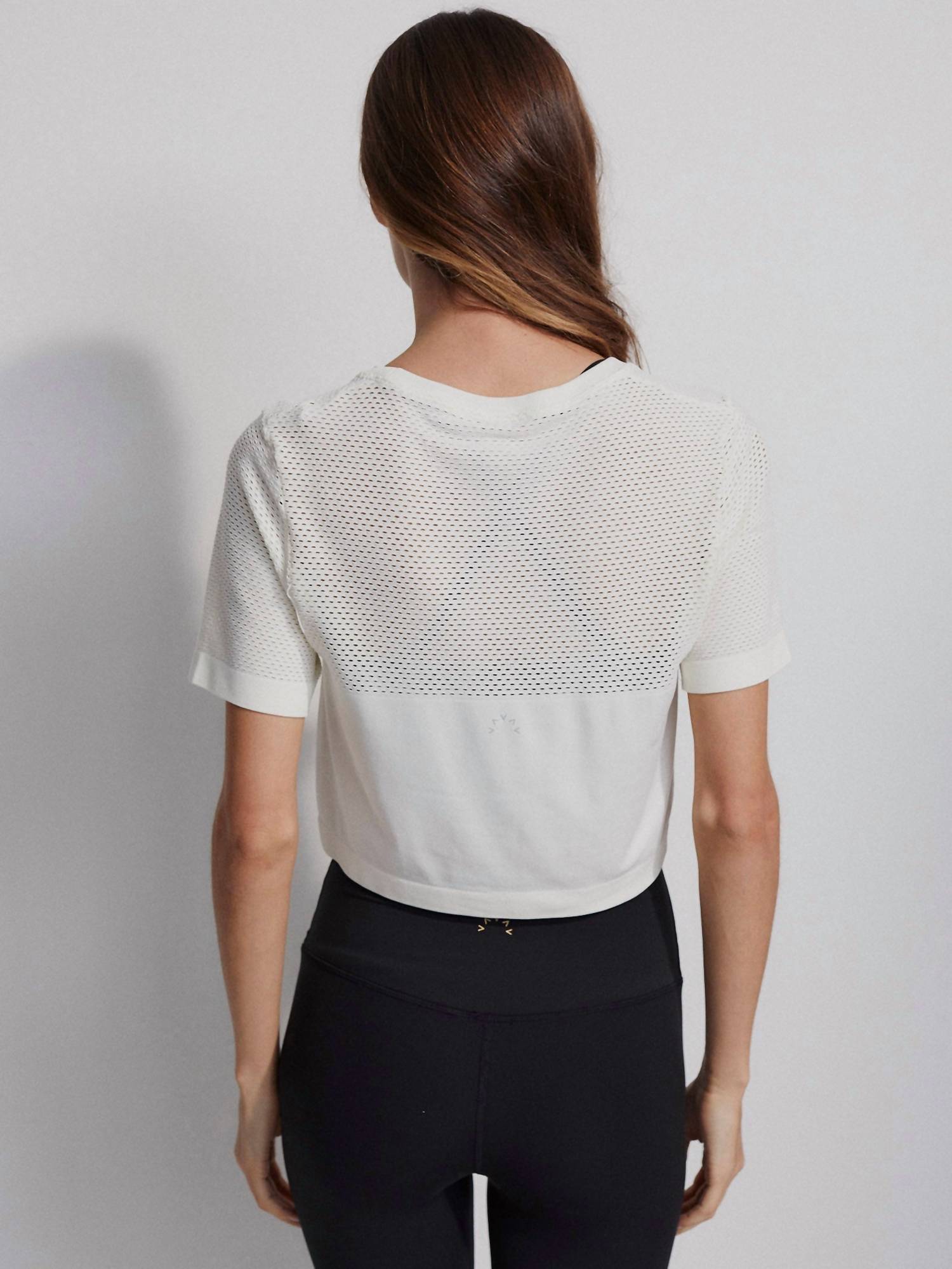 O top curto perfeito para os dias mais quentes. Com corte cropped, a Paden é uma camiseta leve e sem costuras para performance. A camiseta de transição perfeita para quando as temperaturas começam a subir, este estilo cropped apresenta detalhes em mesh contemporâneos no peito, costas e mangas para maior respirabilidade. Combine com seus conjuntos de atividades ou shorts de corrida. Tecido: 100% Nylon. Cuidados: Lavar à máquina com água fria. Não usar alvejante. Não secar na secadora. Não passar a ferro. Não lavar a seco. Retire imediatamente da máquina de lavar. Caimento cropped. Este modelo tem modelagem pequena. Para um caimento mais generoso, recomendamos um tamanho maior. A modelo tem 1,75 m, busto de 81 cm, cintura de 58 cm, quadris de 87 cm e veste tamanho pequeno.