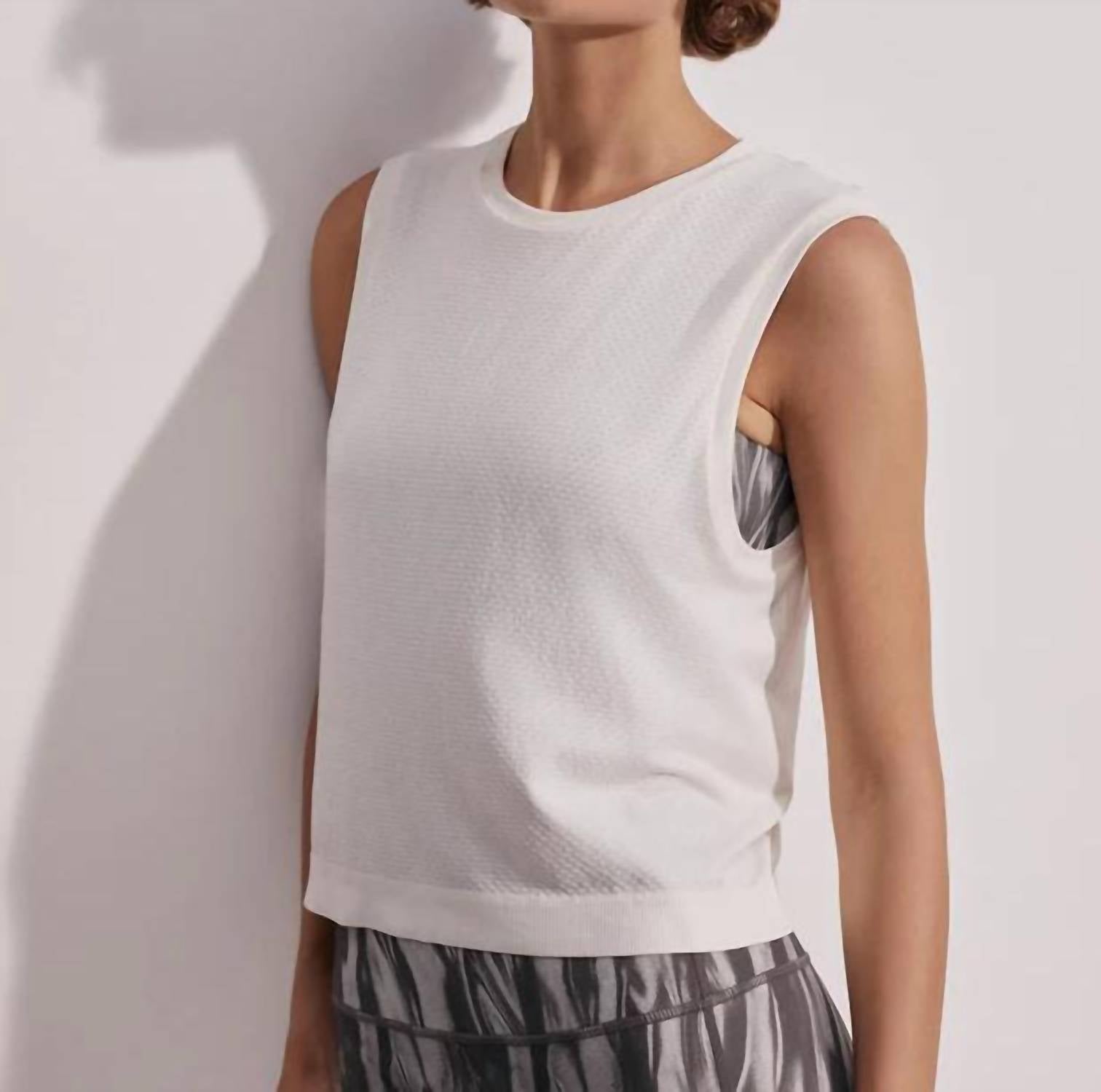 Apresentamos a Regata Crop Sem Costura Page da VARLEY. Este modelo sem mangas e gola redonda é confeccionado em 100% poliamida, oferecendo um caimento leve e com suporte. A regata apresenta um comprimento cropped moderno de 49 cm e seu estilo pull-on facilita o uso em qualquer atividade de verão. Lavar à máquina em ciclo frio e suave; evitar alvejante, não secar na secadora, passar a ferro ou lavar a seco.