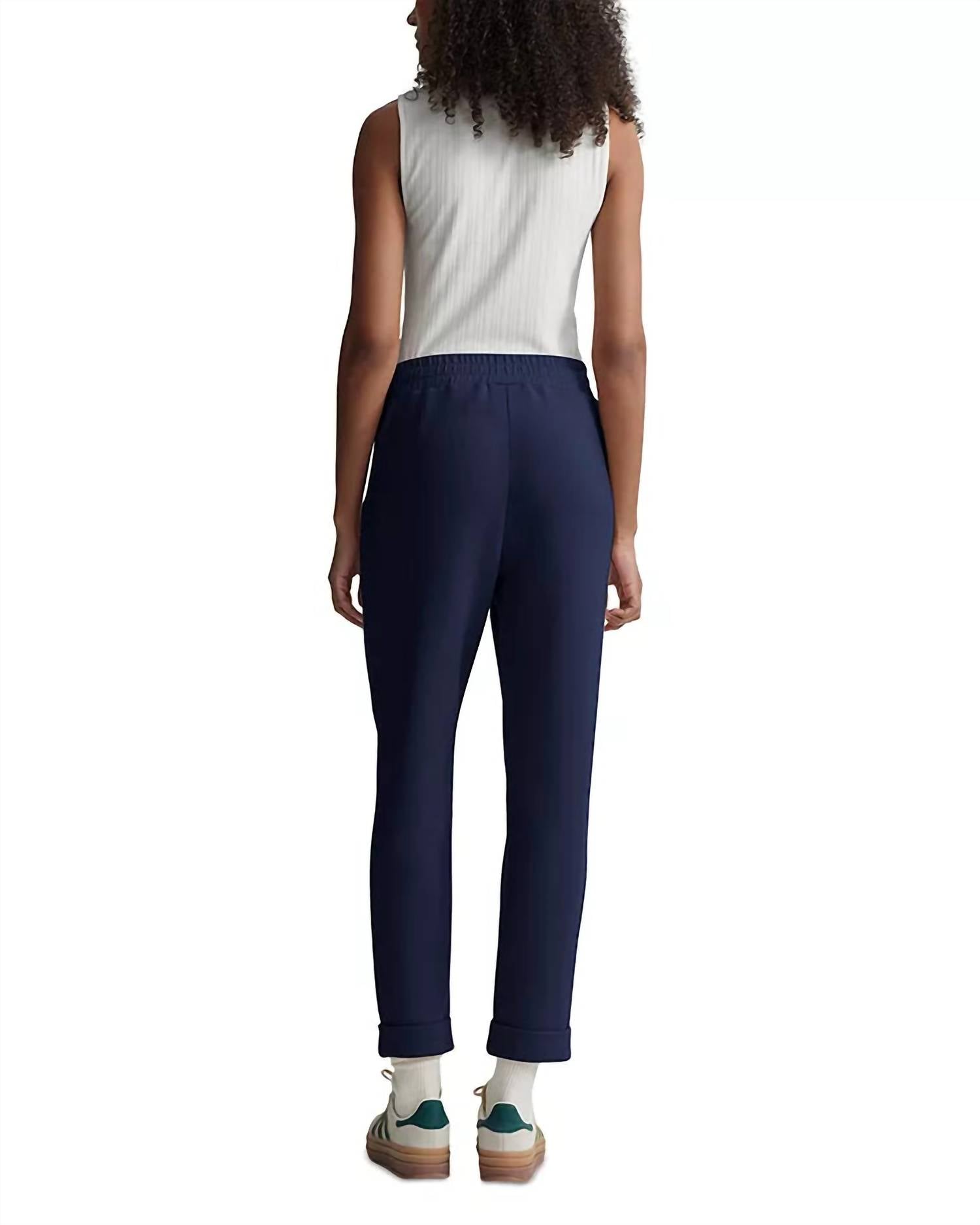 Uma calça reta que combina com todas as estações. Combine-a com sua blusa favorita ou use-a casualmente com sua camiseta favorita. Eleve seu guarda-roupa com a Calça de Cintura Alta com Punhos Enrolados da VARLEY, que exibe uma cintura alta estilosa no elegante Sky Captain. Confeccionada em uma mistura de 72% viscose, 23% poliéster e 5% elastano, esta calça oferece um caimento relaxado com pernas afuniladas e punhos enrolados divertidos. Com um fecho prático e bolsos laterais inclinados, ela combina funcionalidade com estilo elegante. As instruções de cuidado incluem lavagem à máquina com água fria para manter sua qualidade.