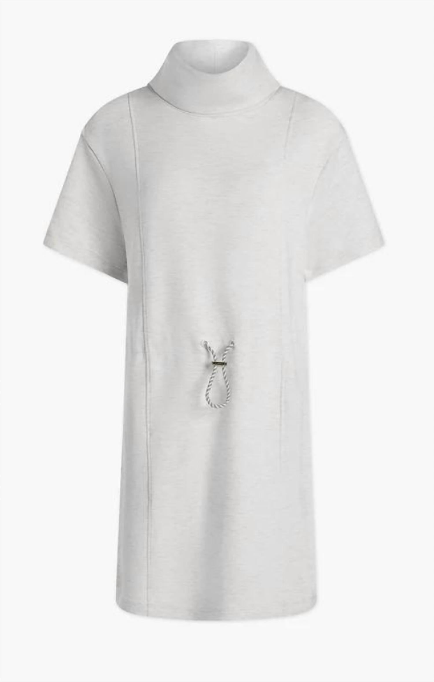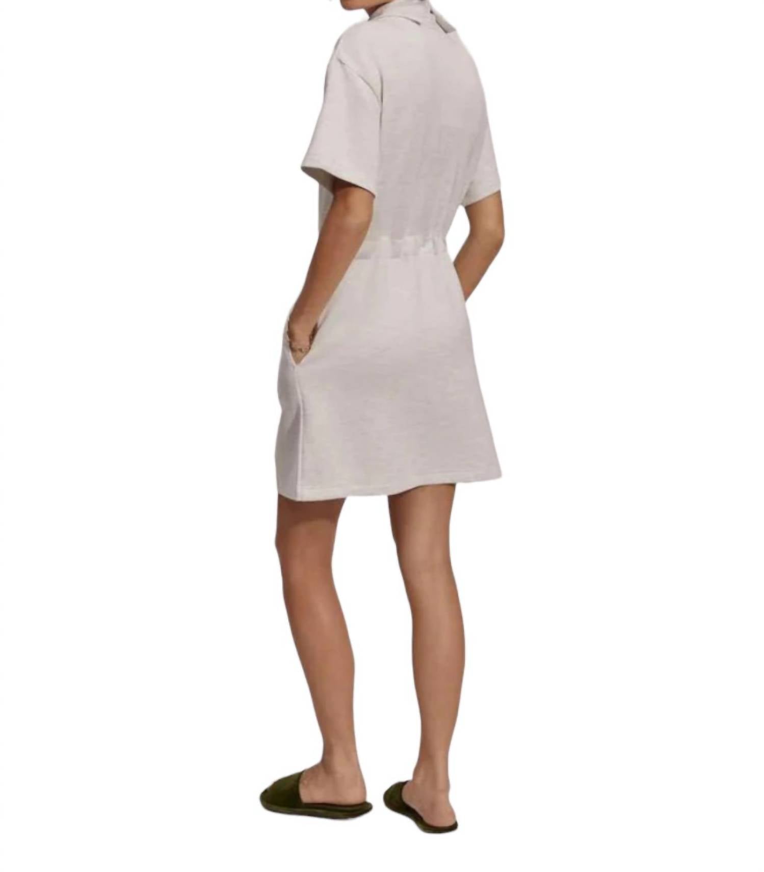 Um vestido curto e arejado para os dias mais quentes. Decote redondo. Mangas curtas. Comprimento até o joelho. Cintura marcada. Caimento relaxado, tamanho real. 72% viscose, 23% poliéster, 5% elastano.