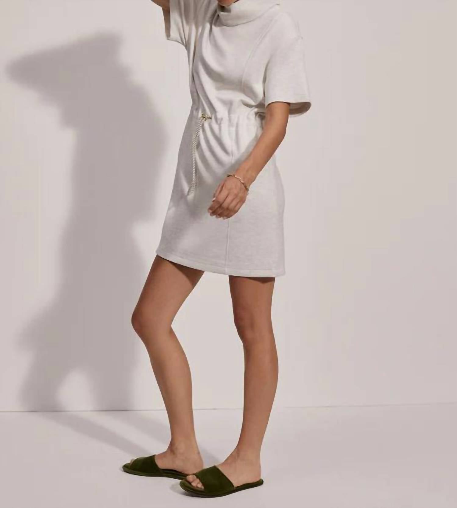O minivestido perfeito para os meses mais quentes. O vestido Sophie é descontraído e confortável. Possui gola alta, caimento solto e ajuste na cintura. O corte na altura do joelho e o detalhe de costura frontal.