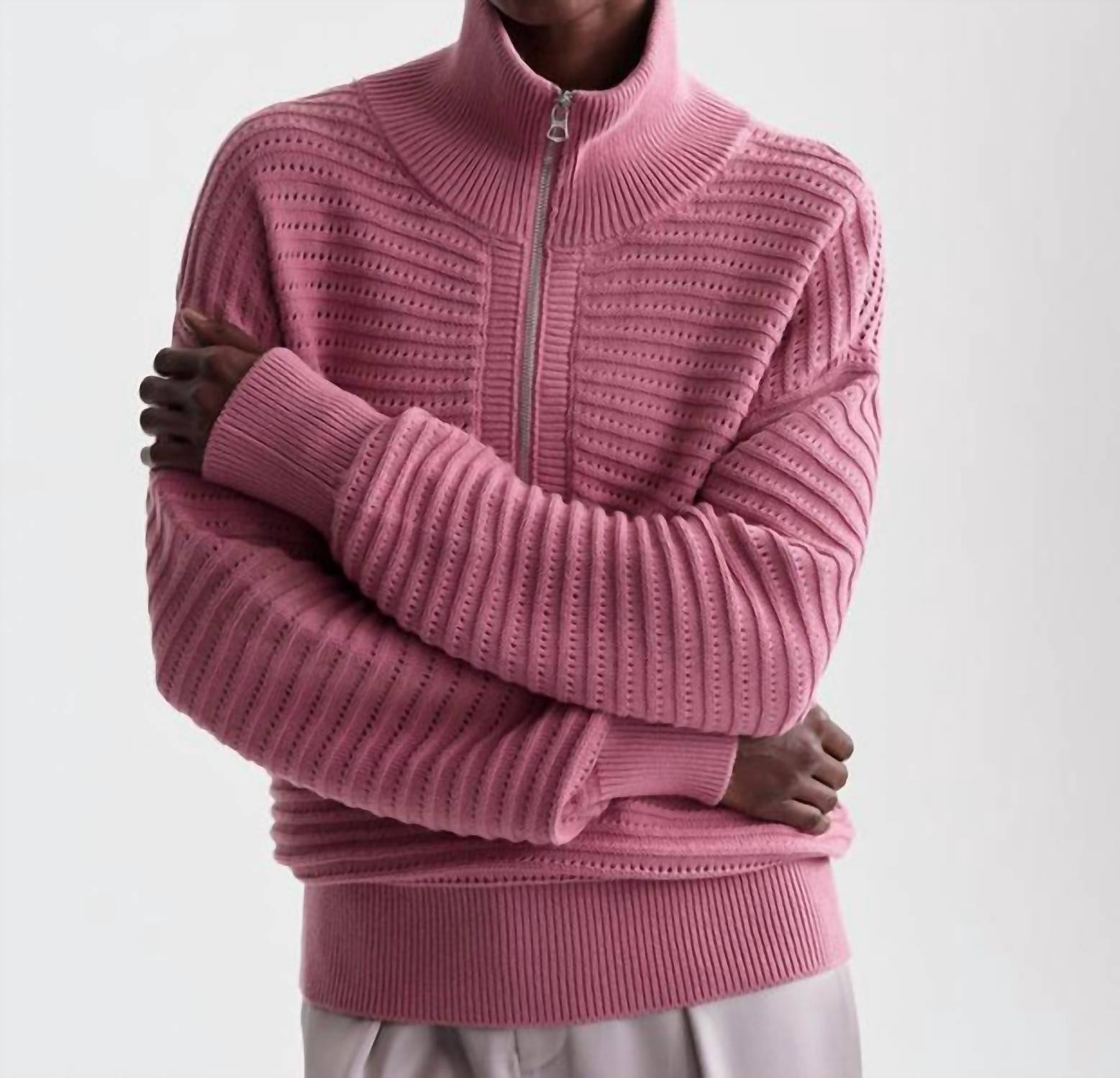 Um ajuste clássico que funciona tão bem abotoado quanto aberto. O Tara Knit é uma peça leve e clássica com meio zíper, cuidadosamente valorizada com delicadas costuras pointelle em estilo otomano. Sua textura refinada e design atemporal o tornam uma peça versátil para o seu guarda-roupa, perfeita para usar em camadas durante as estações de transição.