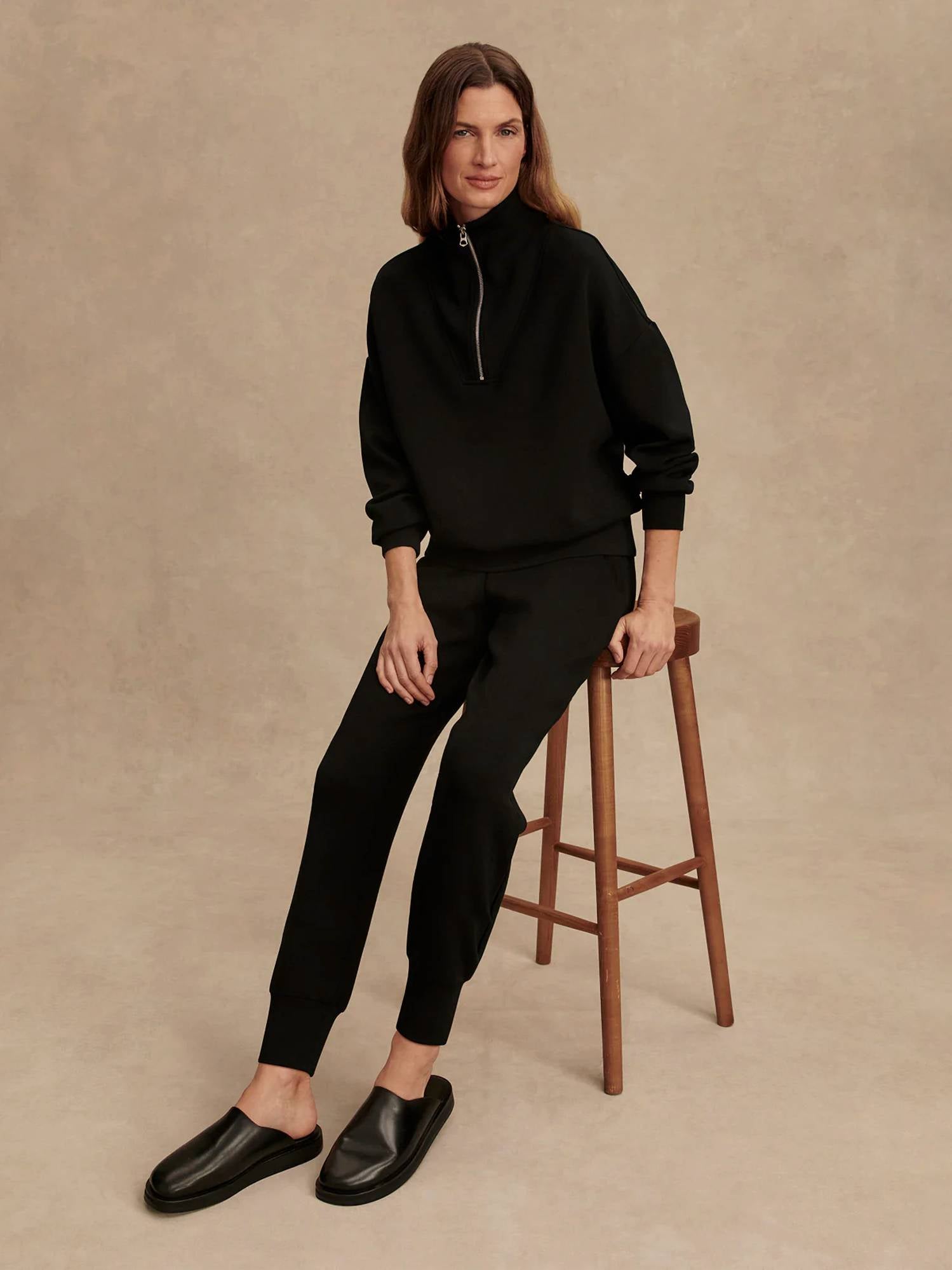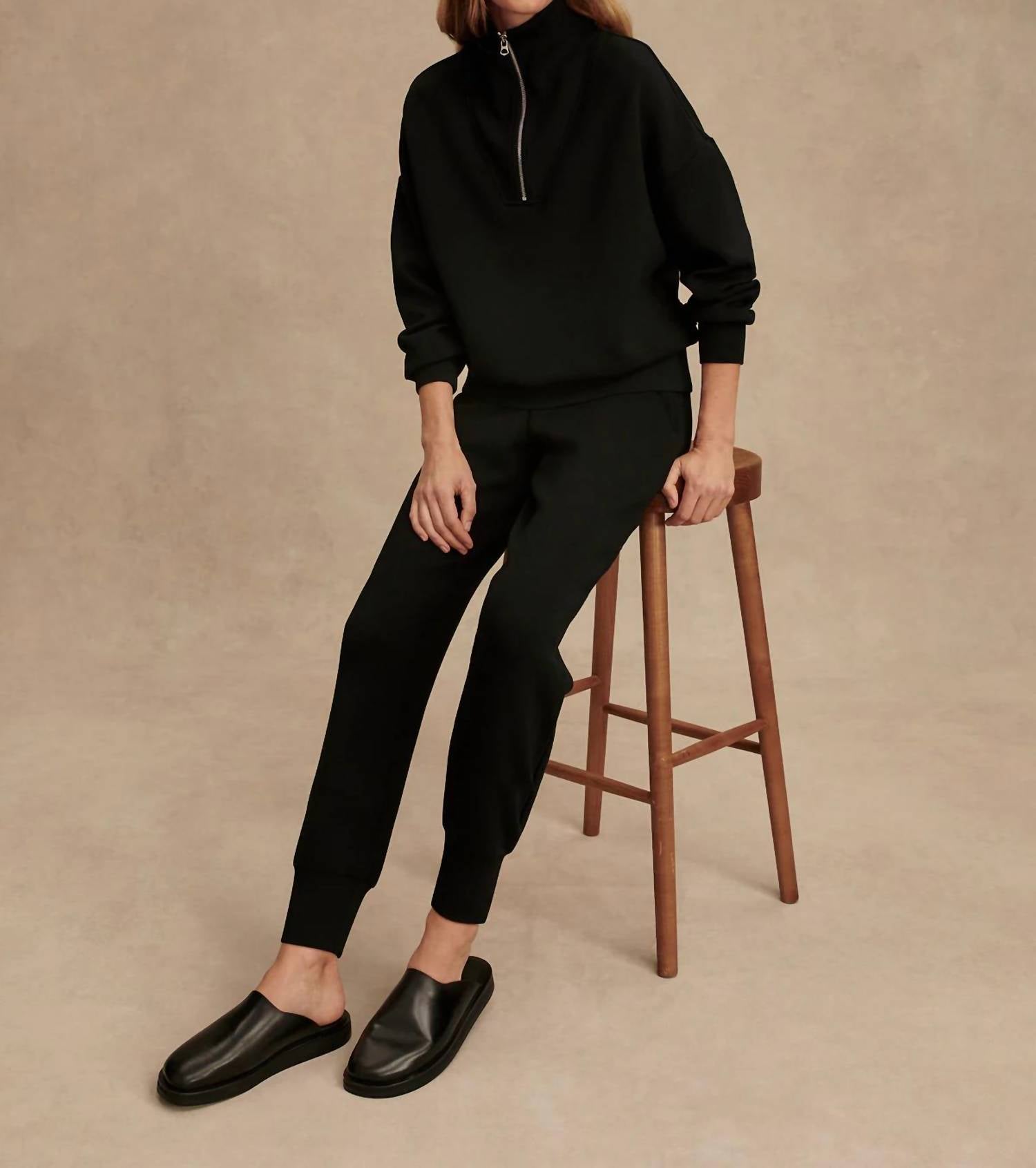 Apresentamos a Calça Slim Cuff 25'' da VARLEY, confeccionada em uma luxuosa mistura de viscose para máximo conforto e estilo. Com uma perna interna ligeiramente mais curta, de 25", esta calça oferece um caimento justo e sob medida, ideal para o dia a dia. Disponível na cor preta clássica, ela é uma adição sofisticada e versátil a qualquer guarda-roupa. A modelo do estúdio tem 1,78 m, busto de 84 cm, cintura de 63 cm e quadril de 94 cm, e veste tamanho P.