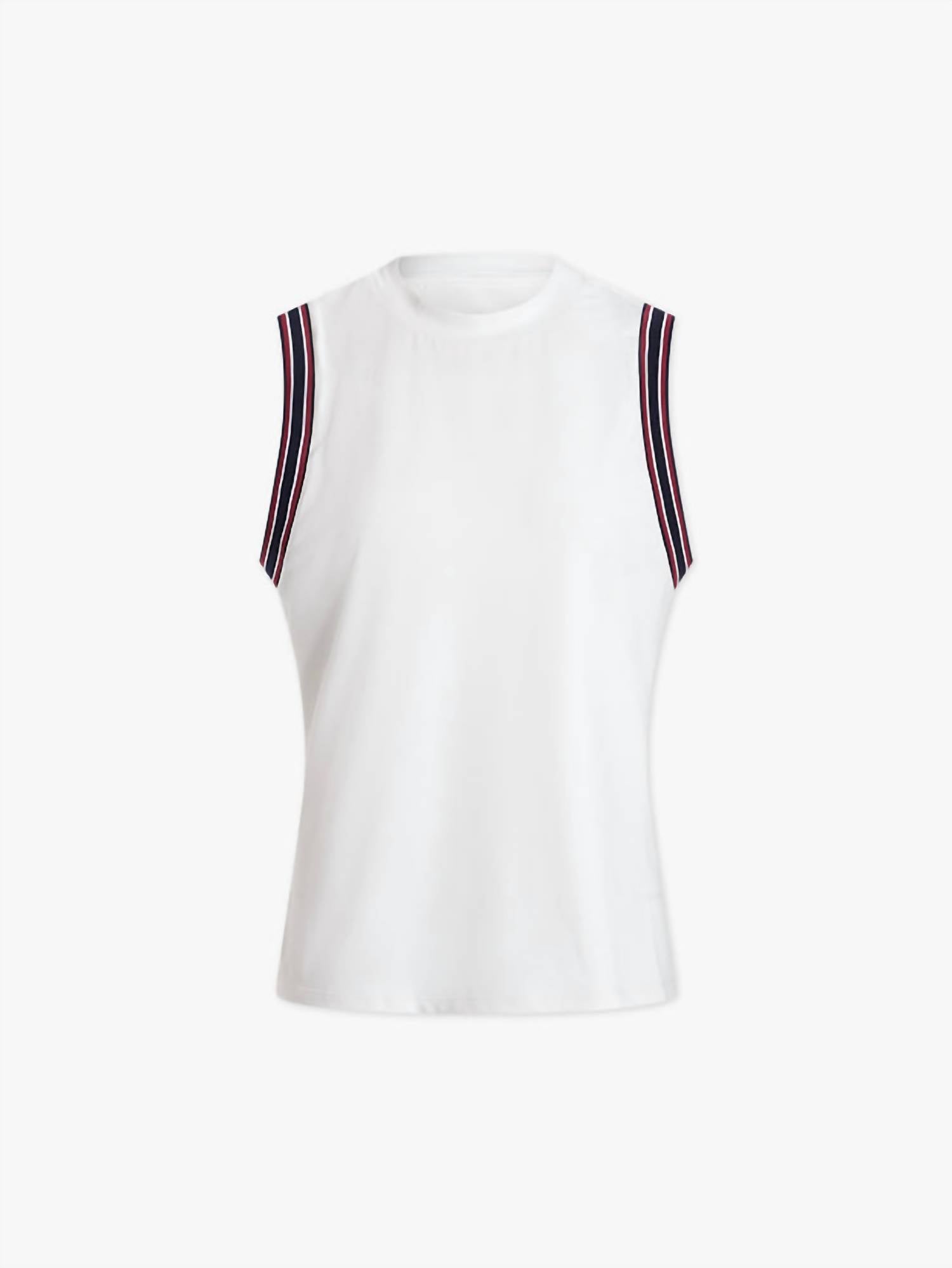 A regata perfeita para as estações mais quentes. Esta regata tem corte slim, gola redonda clássica e cavas levemente caídas. Detalhe de armação plana listrada. Modelo nº VAR01524. A modelo tem 1,75 m, busto de 75 cm, cintura de 61 cm, quadril de 86 cm e veste tamanho pequeno. Tamanho pequeno: Comprimento 59 cm. 88% poliéster reciclado, 12% elastano. Lavar à máquina com água fria, não usar alvejante, não secar na secadora, passar a ferro com água fria, não lavar a seco, lavar com cores semelhantes.