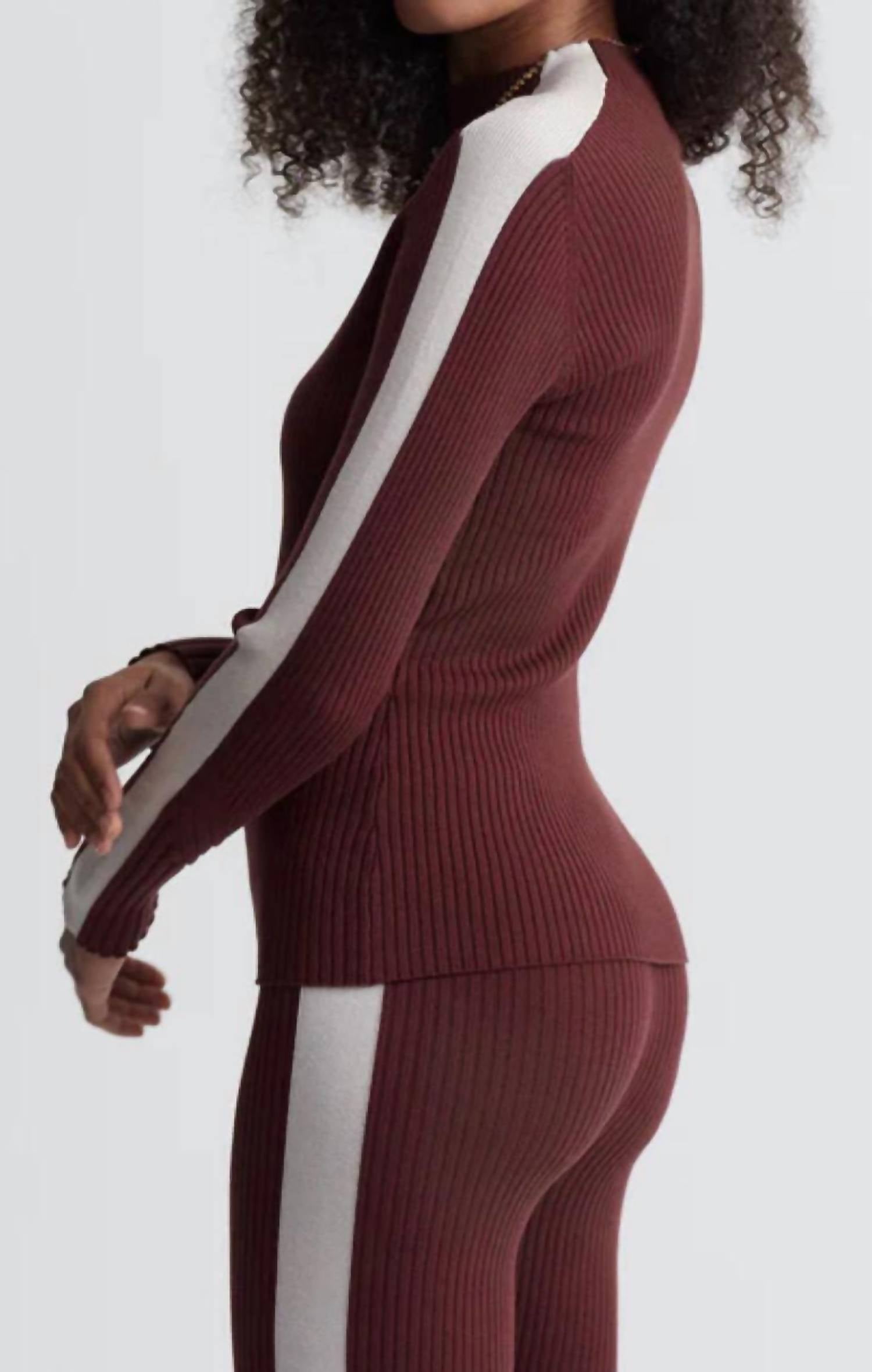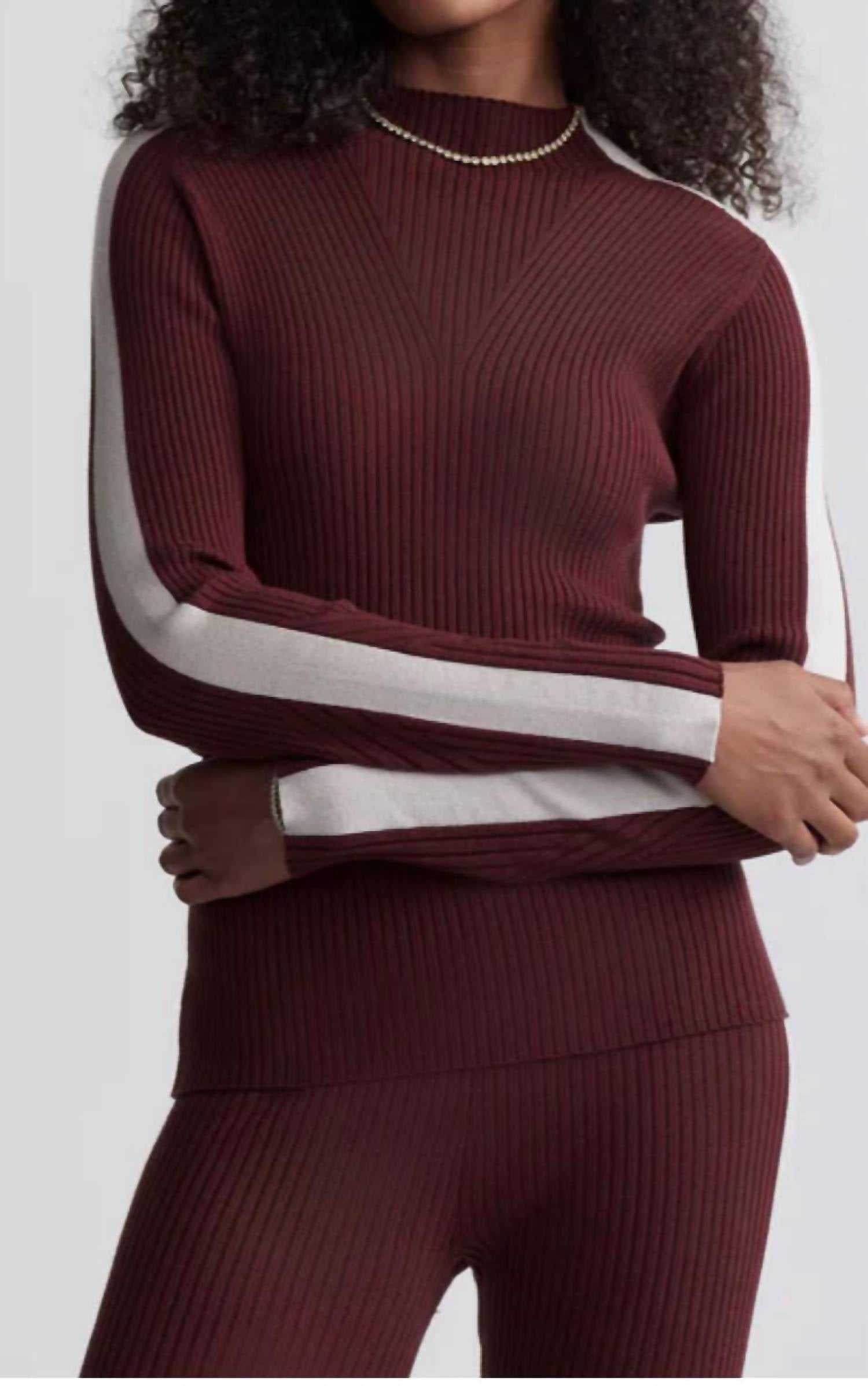 Use por baixo do seu suéter favorito ou por dentro de jeans para um visual de inverno perfeitamente elegante. Conheça o Wilshire Mock Neck Knit da VARLEY, uma adição chique ao seu guarda-roupa de inverno em um tom marcante de chocolate vermelho. Este tricô feminino apresenta mangas longas e painéis texturizados contrastantes para um toque de estilo refinado, perfeito para usar em camadas no après-ski. Desenhado com gola falsa, oferece um corte regular que complementa a silhueta sem esforço. Feito sem bolsos e com um fecho prático, é uma peça que equilibra elegância e funcionalidade perfeitamente.