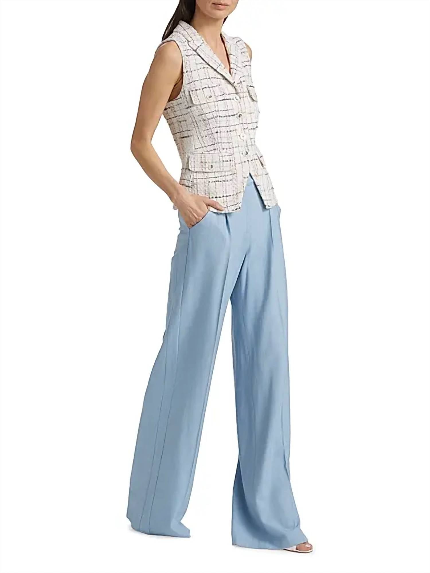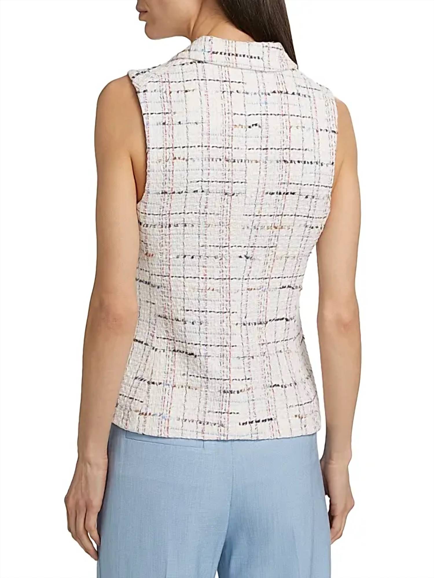 Elevate your knitwear collection with the Benny Tweed Vest by Veronica Beard, a sophisticated piece in Off-White Multi. Crafted in a linen blend, this sleeveless vest features a stylish V-neckline and button closure, enhancing its versatility for layering or solo wear. With a garment length of about 25 inches from shoulder to hem, it is finished with four button-through welt pockets for a practical yet refined look. Please note this vest is imported of Italian fabric and requires dry cleaning for care.
