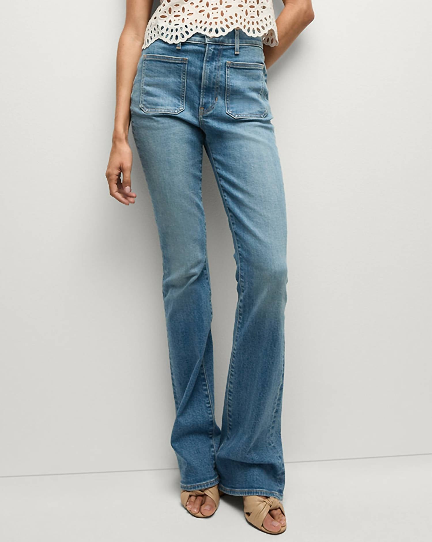 Combine esta calça jeans de perna larga com mules, slides ou suas sandálias de tiras favoritas. Apresentamos a calça jeans skinny-flare Beverly Patch-Pocket da Veronica Beard na marcante cor Seawater Stone. Esta calça jeans apresenta uma cintura alta elegante, um design intrincado com bolsos frontais e uma elegante perna larga. Composta por uma mistura de 97% algodão e 3% elastano, oferece um caimento confortável, confeccionada em denim italiano premium nos EUA. Cuide da sua calça jeans lavando-a à máquina do avesso e pendurando-a para secar. Fechamento: Botão.