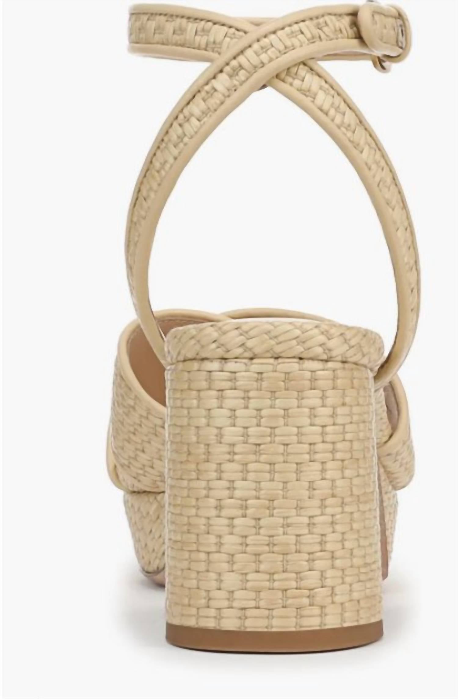 Step into effortless style with the Women's Danika Ankle Strap Platform Sandal by Veronica Beard. This sandal features woven faux leather straps that enhance its natural, earthy appeal, perfect for spring. With an adjustable ankle strap, hidden elastic inset, and a block heel standing at 2 3/4" with a 1" platform, it's both fashionable and comfortably secure. Synthetic upper and a leather lining and sole complete this chic sandal, ideal for a dinner party or Thanksgiving gathering.