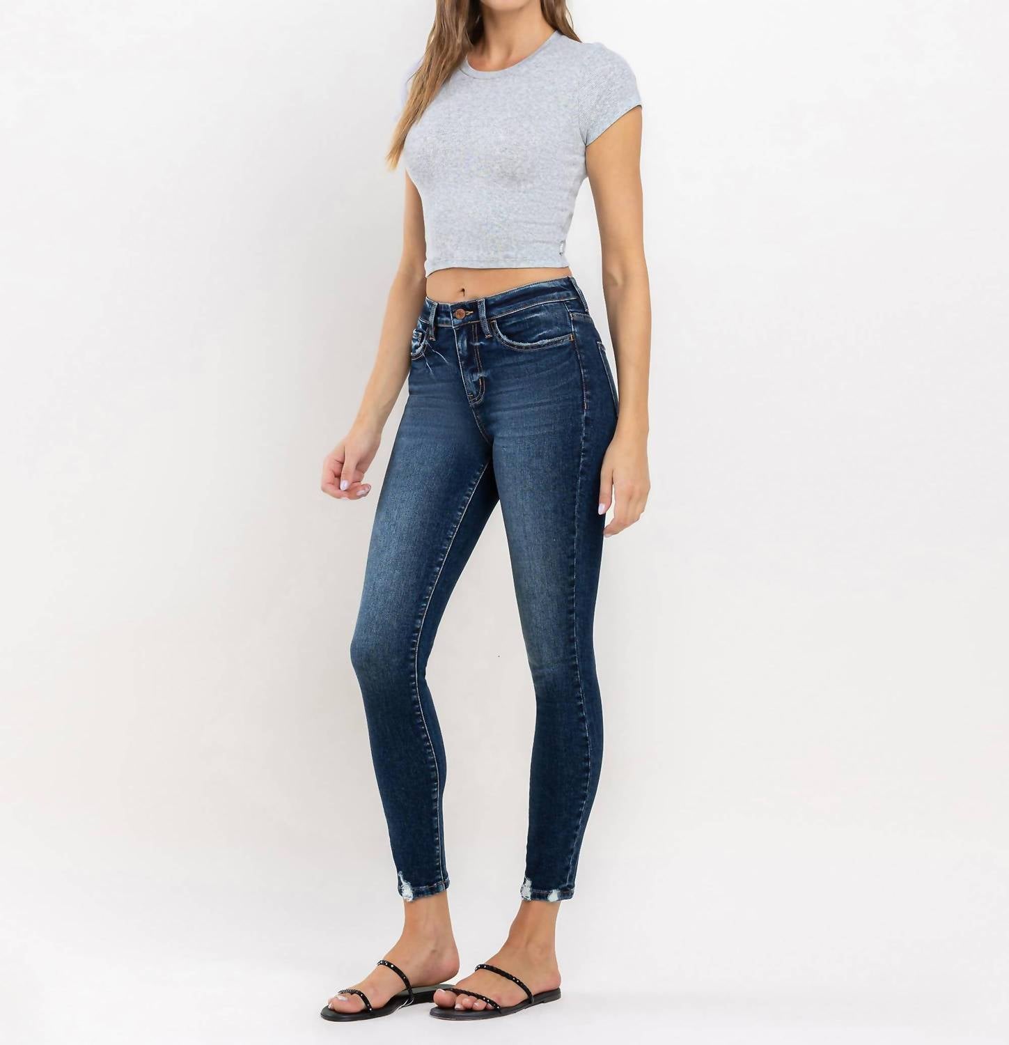 Todo mundo precisa de um bom par de jeans skinny e esse é um estilo que você vai usar sempre, não importa a estação. Conheça a Calça Jeans Skinny Dani da Vervet by Flying Monkey, desenvolvida com um corte de cintura alta e lavagem escura. Esta calça jeans possui elasticidade confortável e é confeccionada em uma mistura de algodão, perfeita para uso o ano todo. Apresenta bainha desgastada estilosa e perna skinny com fecho de zíper funcional.