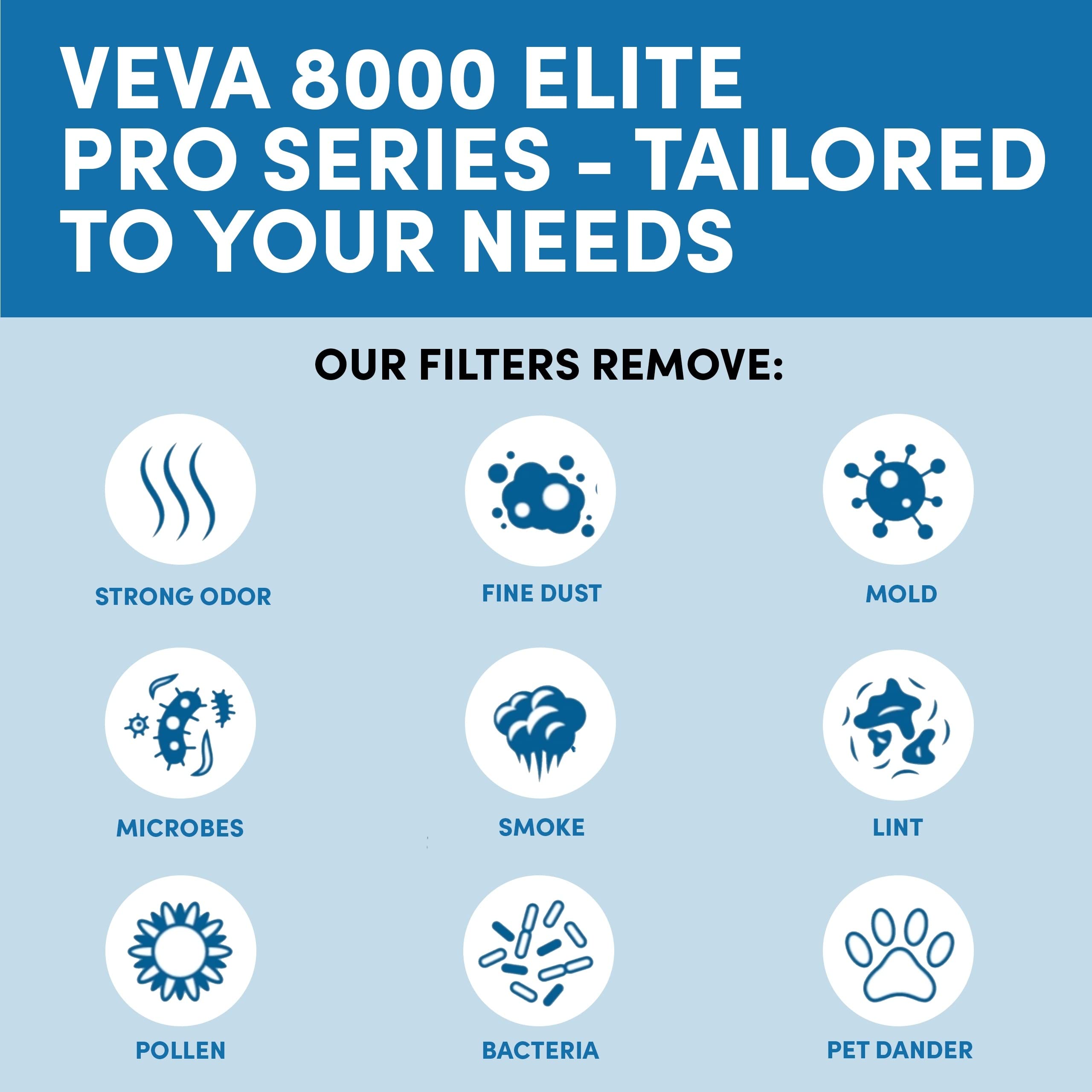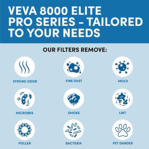 - Perfeito para casa ou escritório - O VEVA 8000 apresenta um design inovador e elegante que garante que o purificador de ar seja o complemento perfeito para qualquer casa ou escritório. Ele pode ser transformado de um purificador de ar de torre para um purificador de ar de mesa removendo a base. A velocidade do ventilador em 3 estágios varia de Ultra Silencioso a Turbo. Mede 23" x 20" x 58"
