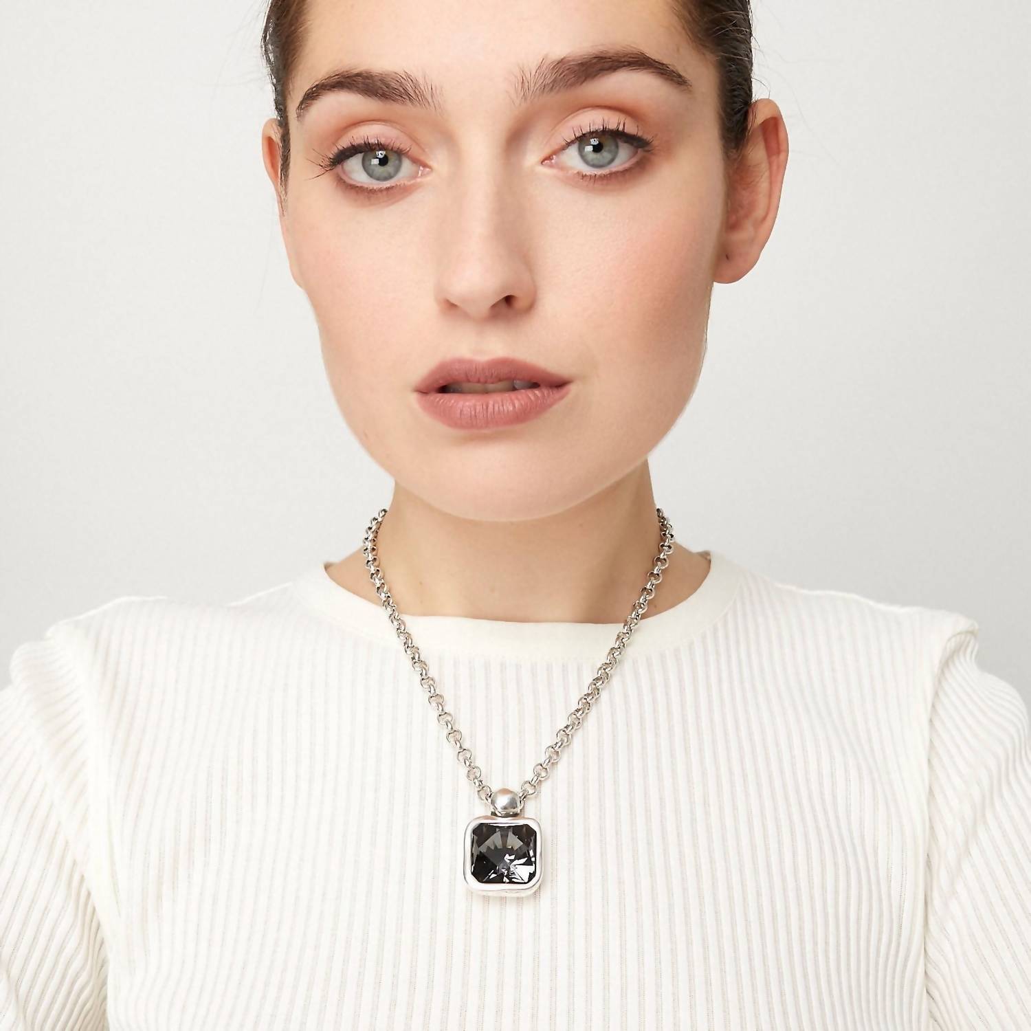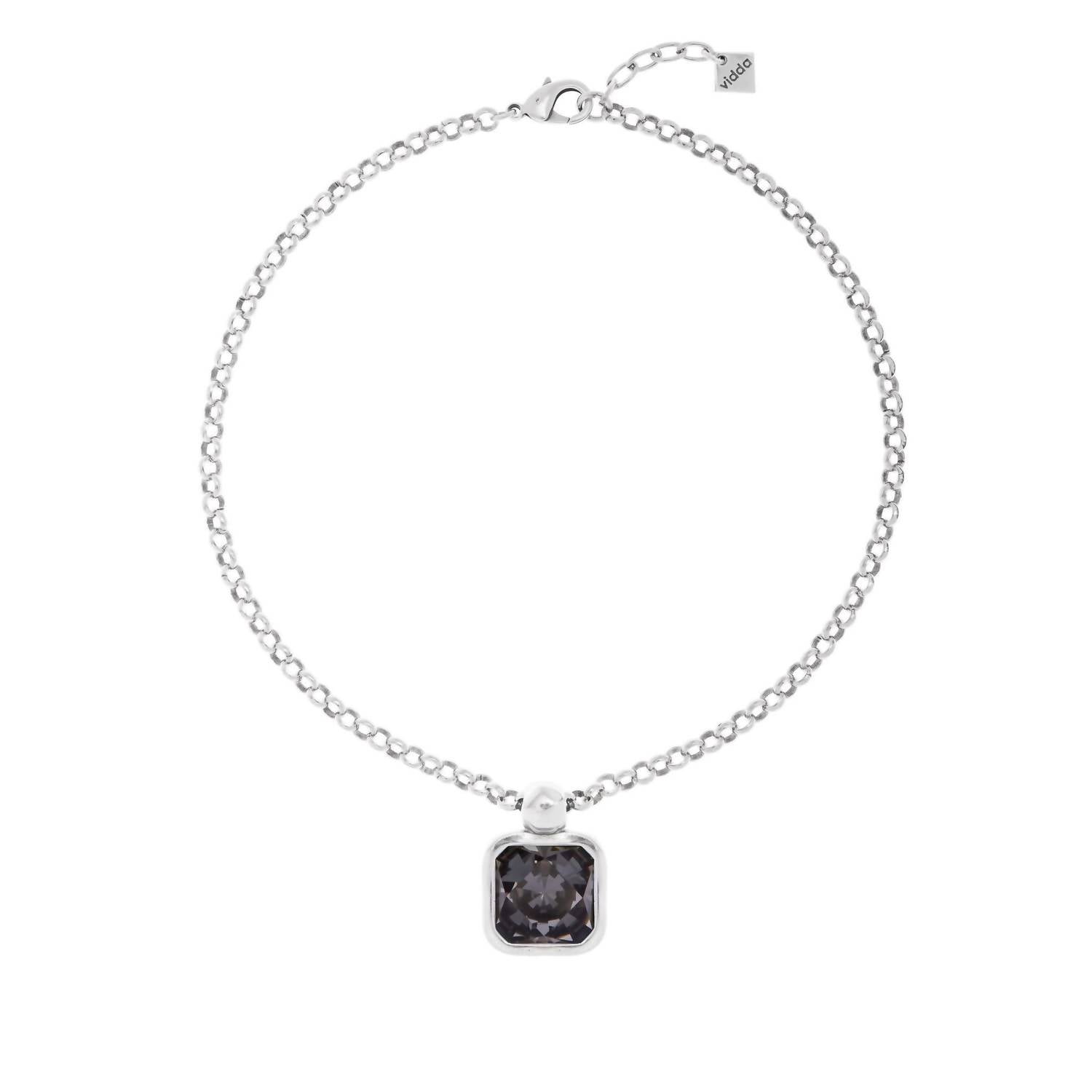 O colar perfeito para se destacar e que complementa até mesmo a camiseta mais básica. Aprimore seu estilo com o Colar Candy da Vidda, com um cristal Swarovski® quadrado central em um cativante tom Silver Night. Este colar fashion é confeccionado em liga metálica banhada a prata de lei, adornado com deslumbrantes cristais Swarovski®, garantindo um toque de elegância a qualquer look. Pesa 52 gramas e mede 45 cm de comprimento, com fecho lagosta e corrente ajustável para um ajuste perfeito. Cuide desta peça requintada com um pano macio e evite expô-la à água.