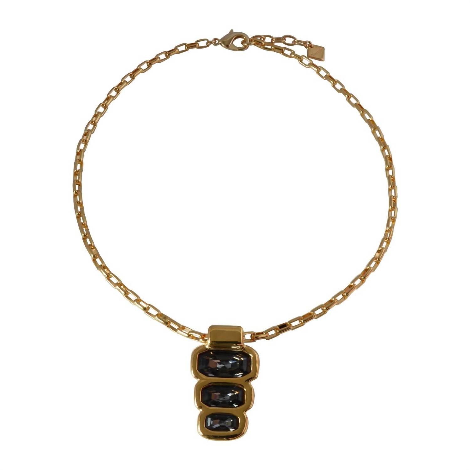 Apresentamos o Colar Fenice da Vidda, uma peça deslumbrante confeccionada em liga metálica banhada a ouro 24k e adornada com cristais Swarovski®. Este colar de corrente curta apresenta uma peça pendente com três cristais de tamanhos variados, oferecendo elegância e estilo. Pesando 42 gramas, possui um fecho lagosta seguro com corrente ajustável para um ajuste confortável de 47 cm. Cuide desta joia fina com um pano macio e anti-polimento e evite a exposição à água.