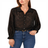 Blusa Vince Camuto Jacquard com botões frontais, preta, tamanho XS