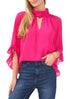 Uma adição delicada a qualquer guarda-roupa da Vince Camuto. Apresenta gola falsa e acabamento com mangas 3/4 franzidas. | Gola falsa; fecho de botão na parte de trás do pescoço | Recorte frontal | Mangas 3/4 com punhos franzidos | Poliéster | Lavável à máquina | Importado