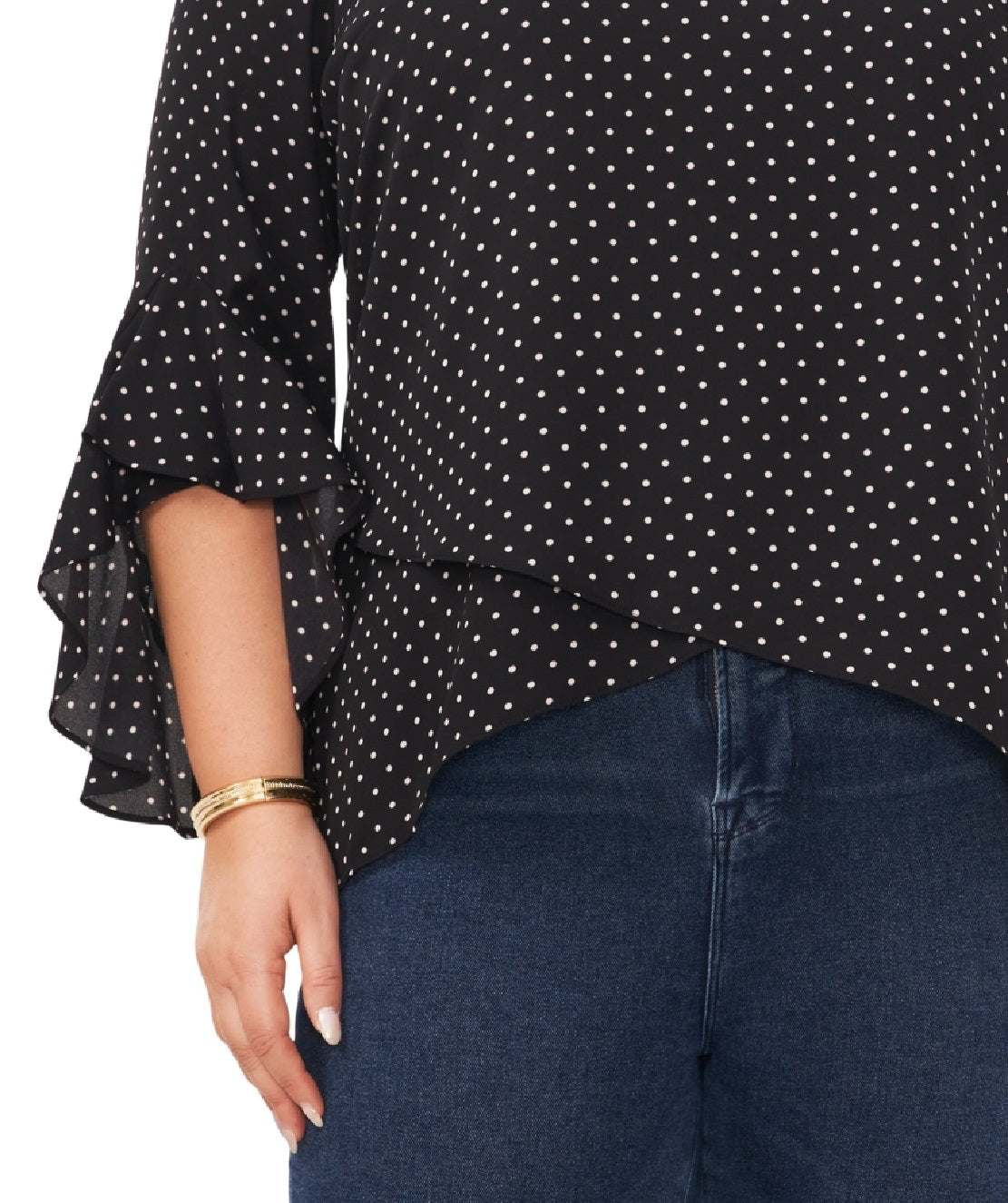 Ask a question about Blusa feminina Vince Camuto com mangas bufantes e decote alto e baixo, preta, tamanho 1X