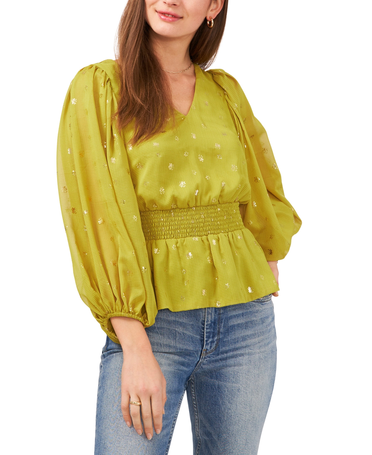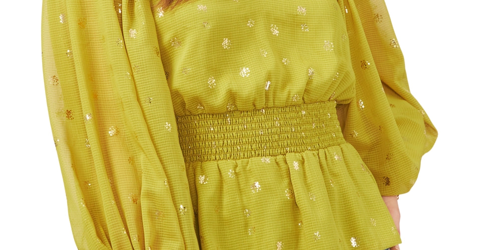 Blusa feminina Vince Camuto com estampa de bolinhas e cintura alta, verde, tamanho médio