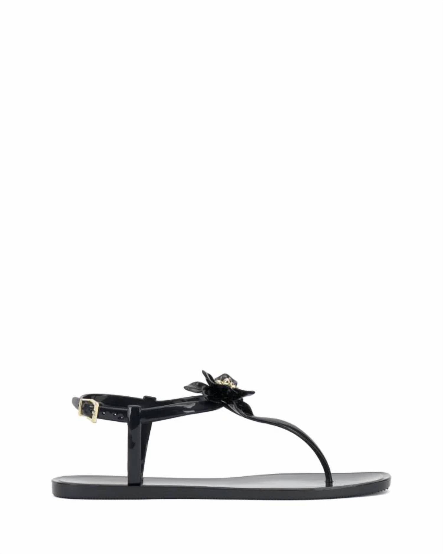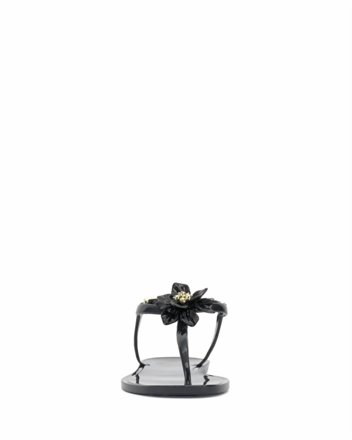 Vestidos fluidos, calças cropped e até macacões... esta sandália combina com todos! Com aplique floral. Rasteira. Palmilha acolchoada.