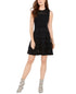 Um vestido justo e evasê com muito estilo | esta escolha da Vince Camuto é desenhada com detalhes de listras e malha no jugo e na bainha