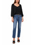 Blusa feminina Vince Camuto com babados e decote em V, preta, tamanho P