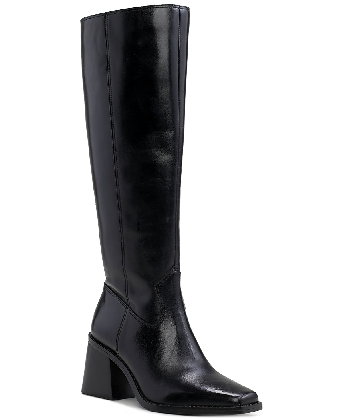 3 saltos altos | Botas de montaria com bico quadrado e fecho de zíper no tornozelo interno | Altura do cano; 16; Circunferência; 14-1/4; medida no tamanho 7 | NOTA: A altura e a circunferência do cano variam de acordo com o tamanho. | Cabedal de couro; forro sintético; sola sintética | Importado
