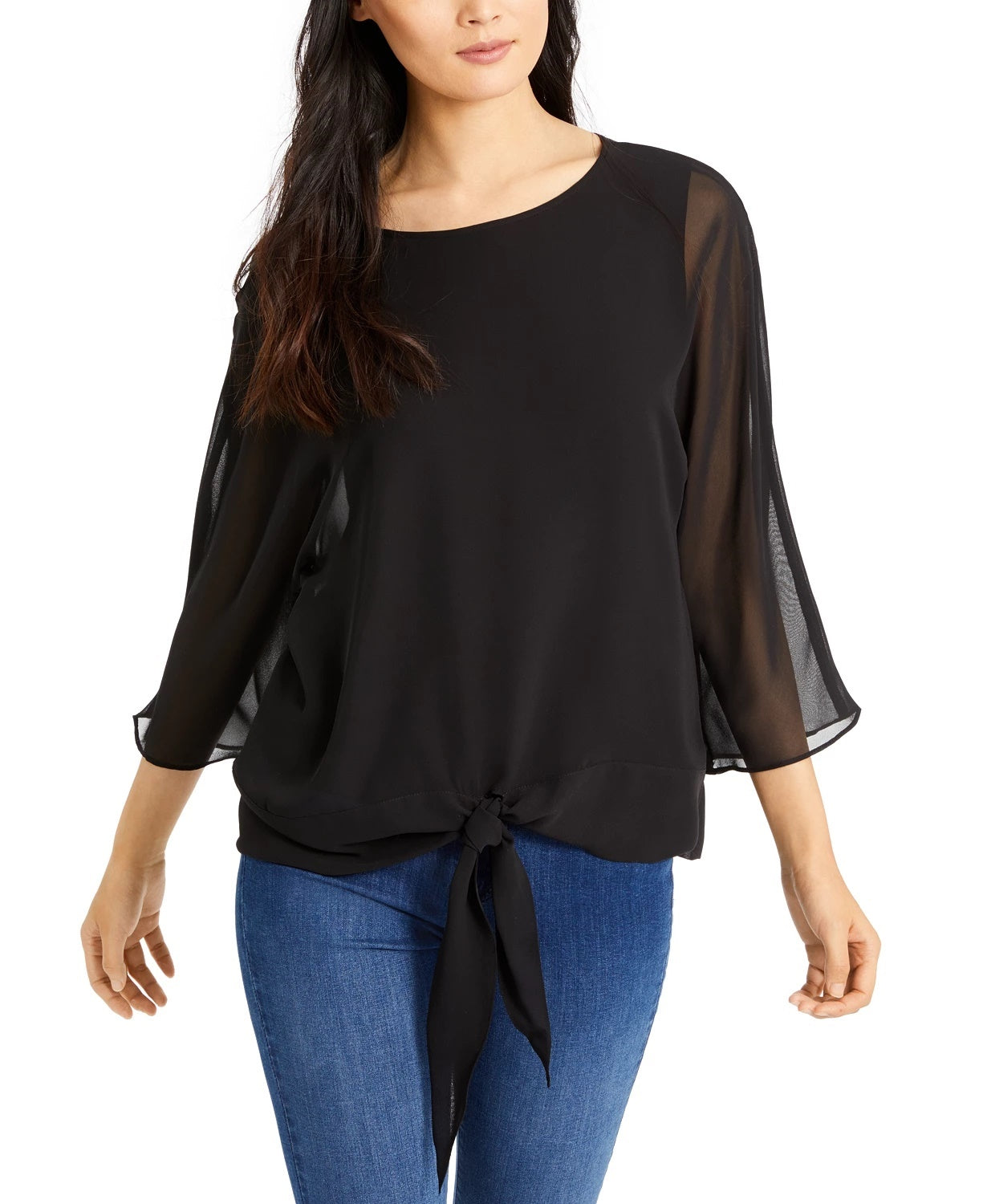 Blusa transparente com amarração frontal Vince Camuto feminina, cinza, tamanho pequeno