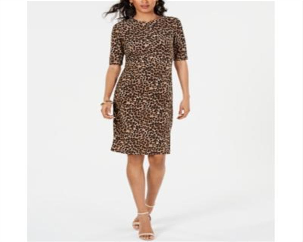 Vestido feminino Vince Camuto manga curta acima do joelho marrom tamanho 10