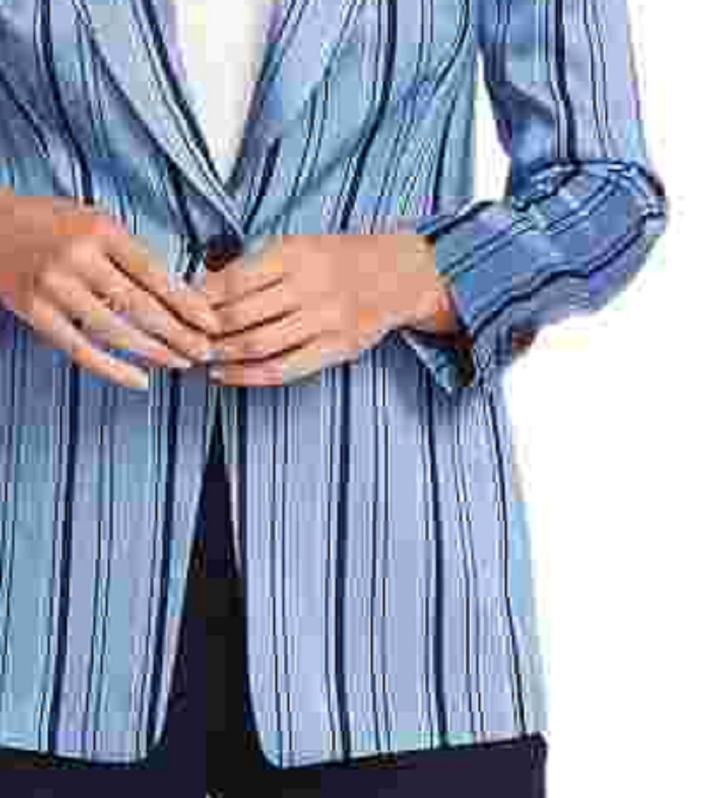 Ask a question about Blazer feminino listrado de botão único Vince Camuto, azul, tamanho 10