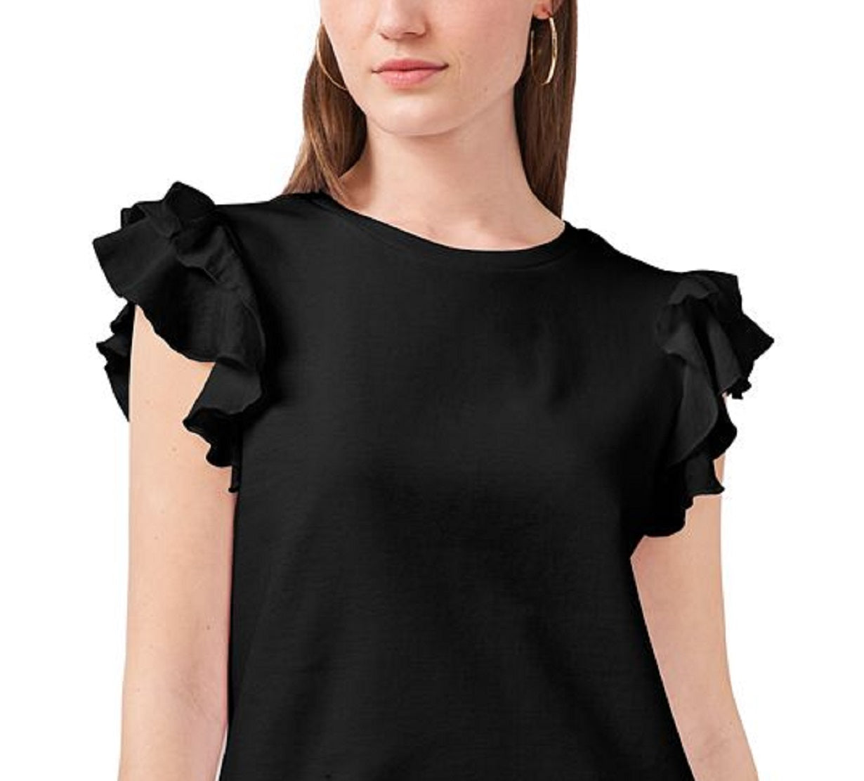 Ask a question about Camiseta feminina Vince Camuto com mangas franzidas e babados, preta, tamanho extragrande