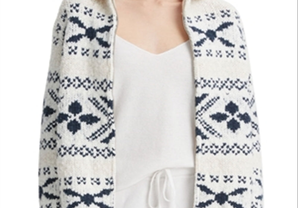 Cardigan Vince Feminino Nordic Fair Isle com Zíper Bege Tamanho Médio