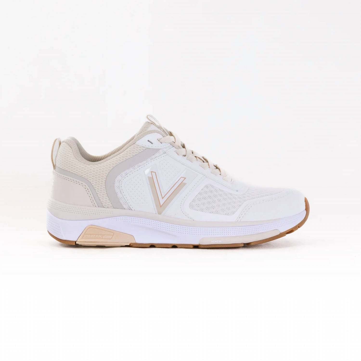 Quando moda e funcionalidade se unem perfeitamente. Entre em sintonia com o Tênis Feminino Walk Strider da VIONIC, criado com uma combinação perfeita de estilo e suporte. Este tênis apresenta cabedal em mesh com acabamento em material sintético ou camurça, complementado por uma palmilha removível em EVA revestida em mesh para um ajuste personalizado. Seu solado de borracha durável conta com a Tecnologia First Ray e a palmilha Vio Flex para estabilidade superior e controle de umidade, tornando-o perfeito para uso durante todo o dia. Com salto de 4,5 cm e plataforma de 2,8 cm, este tênis branco/creme proporciona o equilíbrio ideal para uma passada natural.