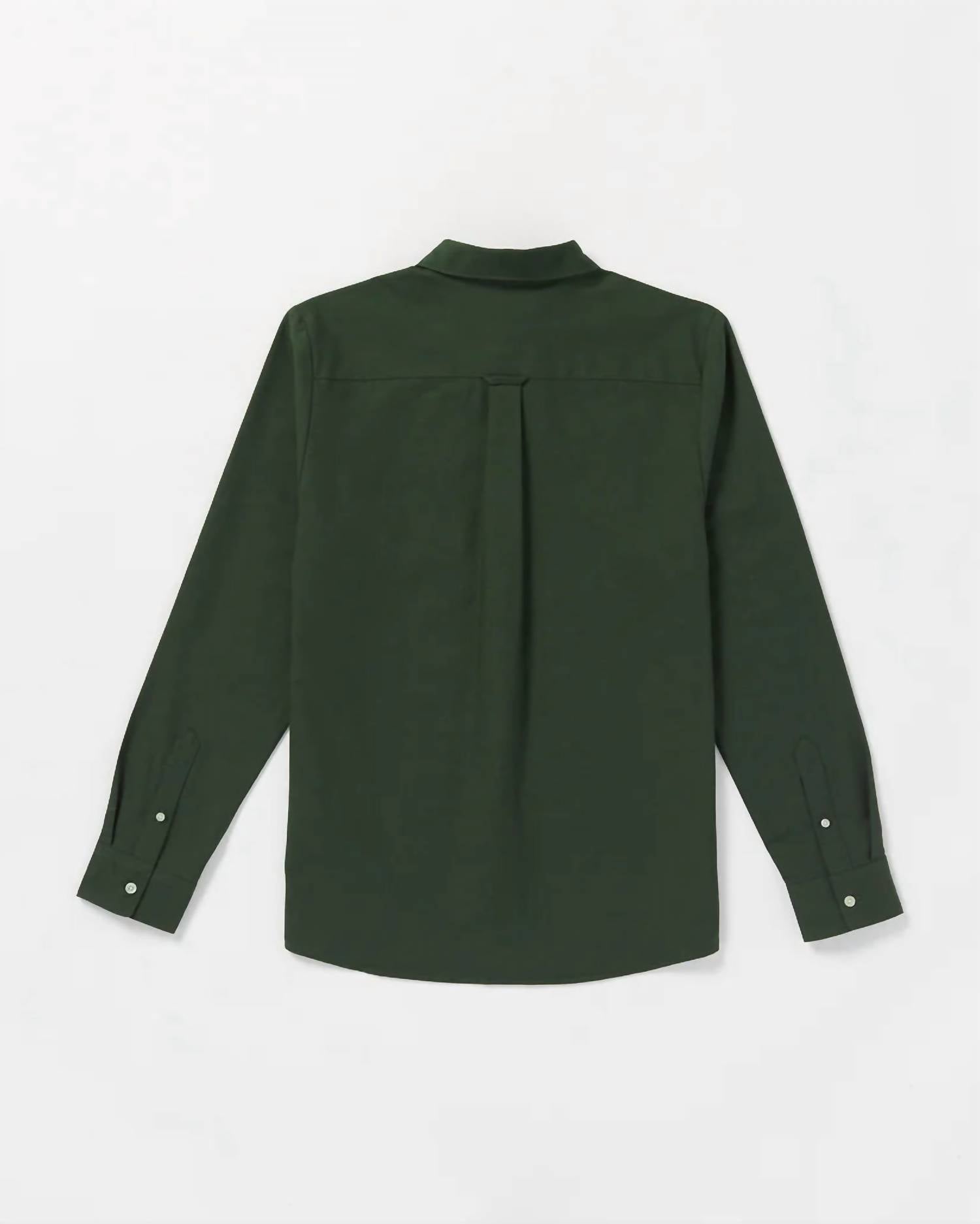 Introducing the Veeco Oxford Long Sleeve Shirt by VOLCOM, a perfect blend of comfort and classic style with a solid pattern in Dark Forest. Made from 100% soft cotton, this long sleeve shirt features a button-down collar and stylish novelty logo buttons. The left chest pocket is accented with two-color Volcom embroidery, adding a touch of unique detail. Closure: Button closure. Ideal for casual wear, this shirt is a timeless wardrobe staple.