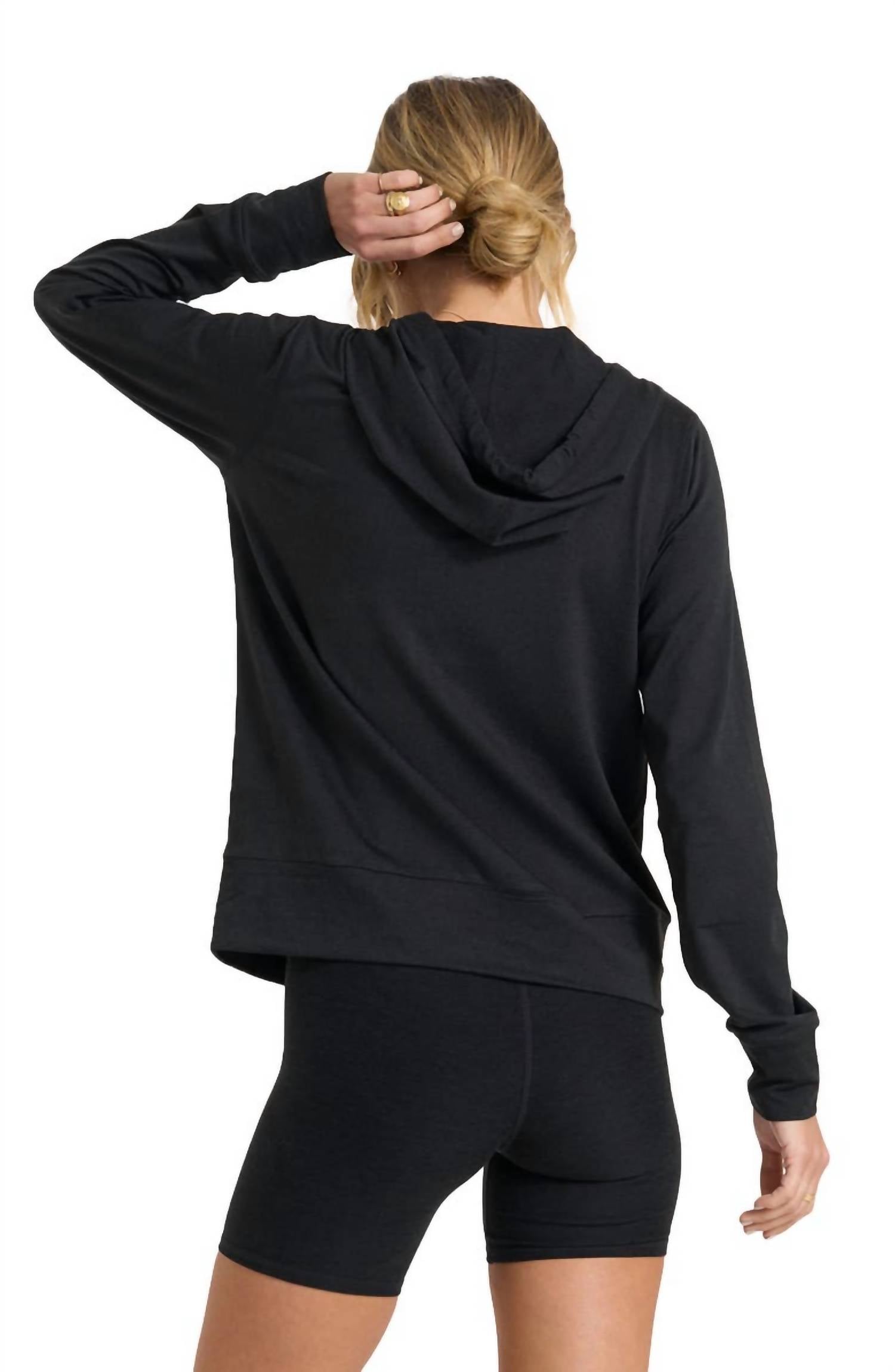 Experimente o Moletom com Capuz Feminino Halo Performance 2.0 da Vuori, desenvolvido para o máximo conforto e versatilidade. Este moletom com capuz em preto mesclado apresenta mangas compridas e um prático fecho de zíper, tornando-o ideal tanto para atividades ativas quanto para lazer. Composto por 89% poliéster reciclado e 11% elastano, possui tecido que absorve a umidade com elasticidade em quatro direções para flexibilidade superior, e seu comprimento de 60 cm aprimora o ajuste. Lavável à máquina e adequado para secagem em tambor, este moletom com capuz é a combinação perfeita de desempenho e praticidade.