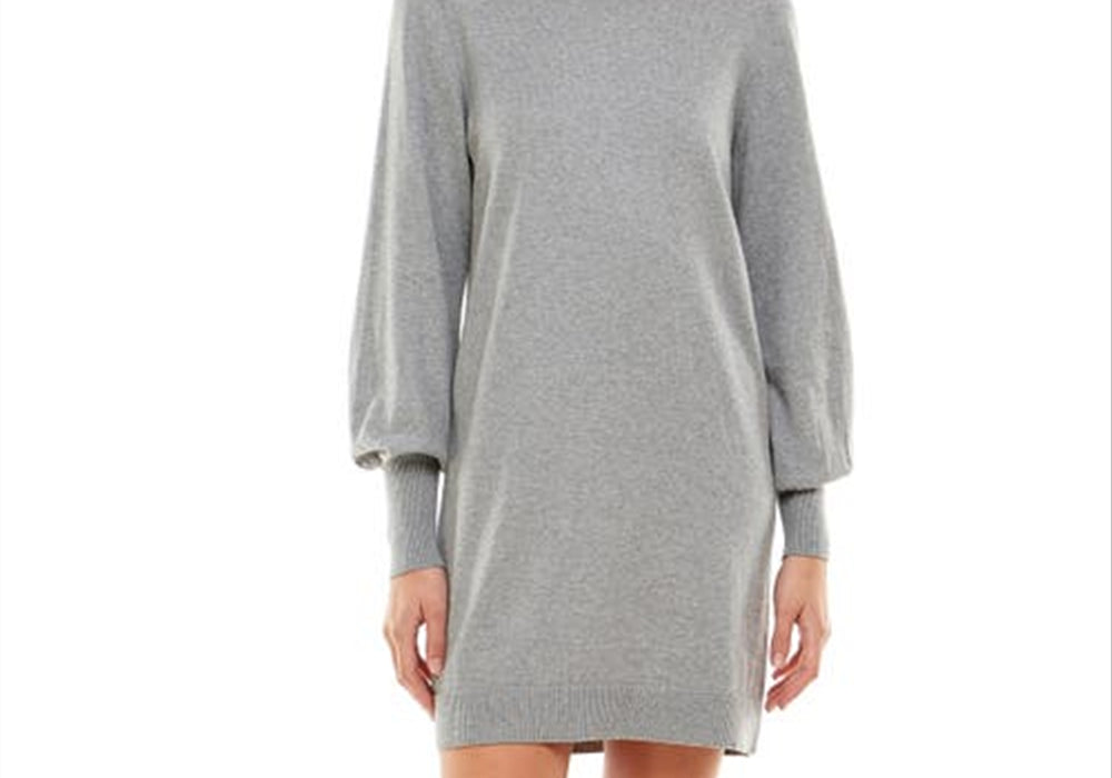 Cor cinza mesclado | Tamanho extrapequeno | Design de manga comprida | Estilo gola alta | Material de malha | Corte slim | Comprimento até o joelho | Macio e quente | Estilo vestido suéter | Marca Wayf | Vendido na Nordstrom | Design Morela