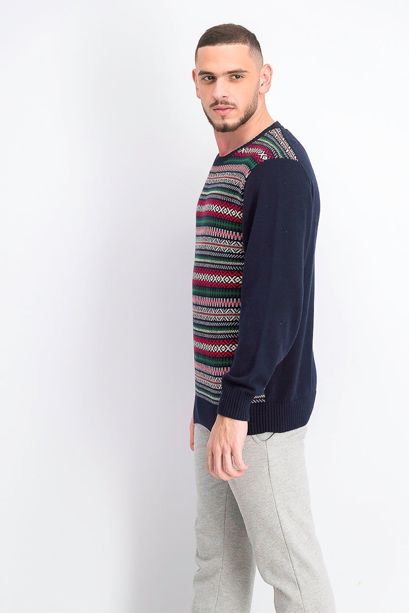 100% algodão | Estampa Fair Isle modernizada | Gola redonda, suéter, mangas compridas | Estampa Fair Isle em toda a peça na frente | Painel traseiro e mangas em vermelho liso | Gola, punhos e bainha canelados