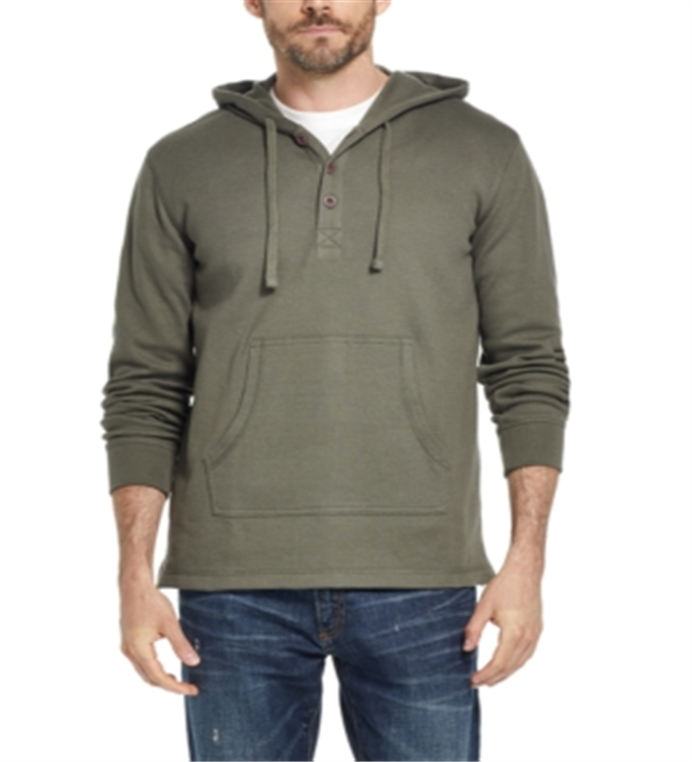 Mantenha seu visual alinhado com sua personalidade descontraída ao usar esta Henley texturizada da Weatherproof Vintage | com capuz com cordão e bolso canguru. | Ajuste clássico | Gola Henley; fecho de três botões | Capuz com cordão | Bolso canguru | Algodão/poliéster