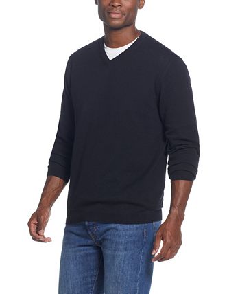Suéter masculino vintage de algodão e caxemira, gola V, preto, tamanho grande, à prova de intempéries