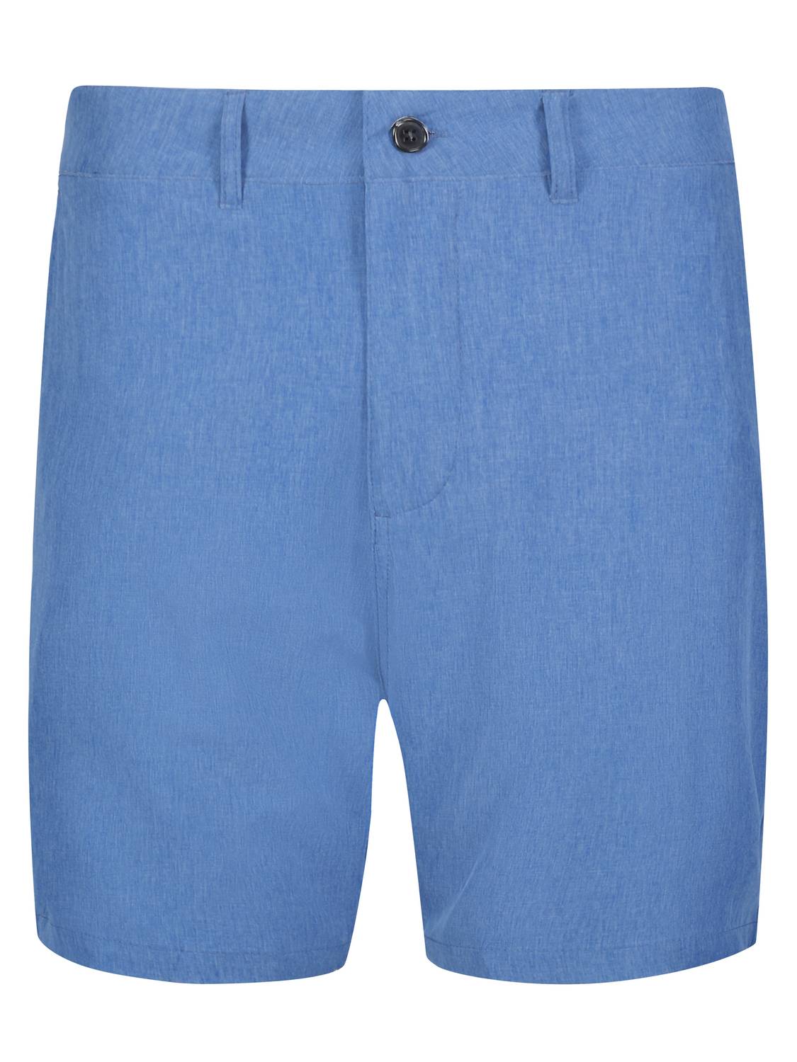 Meet the Bayport Shorts by White Water Life, your go-to choice for stylish and functional wear this summer. These men's hybrid shorts in a solid light blue color feature a seven-inch inseam and are crafted from incredibly lightweight, feather-soft fabric with added stretch for unparalleled comfort. Designed with practicality in mind, they include a zippered back pocket and an embroidered icon logo above it. Closure: Button closure. Available in Navy, Grey, and Light Blue.