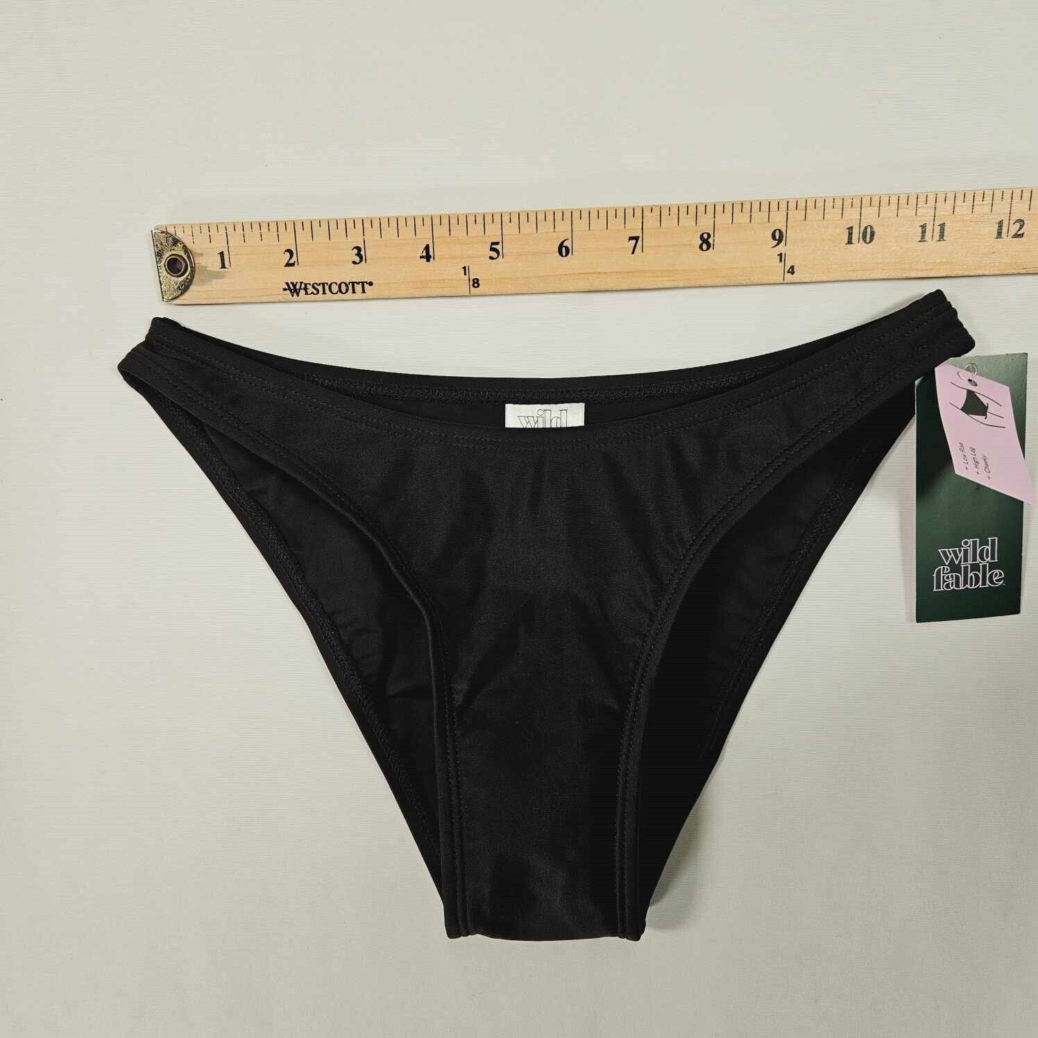Design de cintura alta | Estilo frente cavada | Calcinha de biquíni atrevida | Marca Wild Fable™ | Cor preta lisa | Tamanho XXS | Traje de banho feminino | Ajuste confortável | Tecido de secagem rápida | Corte alto