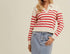 Introducing the Striped Red And Cream Cropped Collared Sweater by Wishlist, a must-have for cozy, stylish travel during the fall season. This long-sleeve sweater boasts a relaxed fit and a chic V-neckline, perfect for pairing with festive activities. Crafted from a luxurious blend of 50% Viscose, 28% Polyester, and 22% Nylon, its pull-on closure offers convenience and comfort. Embrace effortless elegance this Christmas with Wishlist Apparel's signature workwear-inspired design.