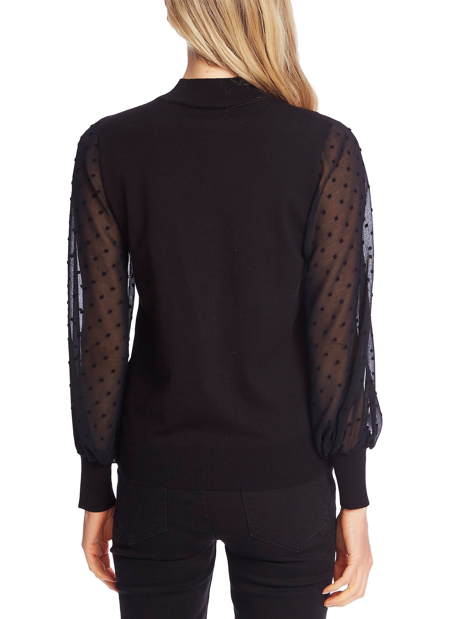 Suéter feminino Cece de manga comprida, gola falsa, design contrastante, preto, tamanho M