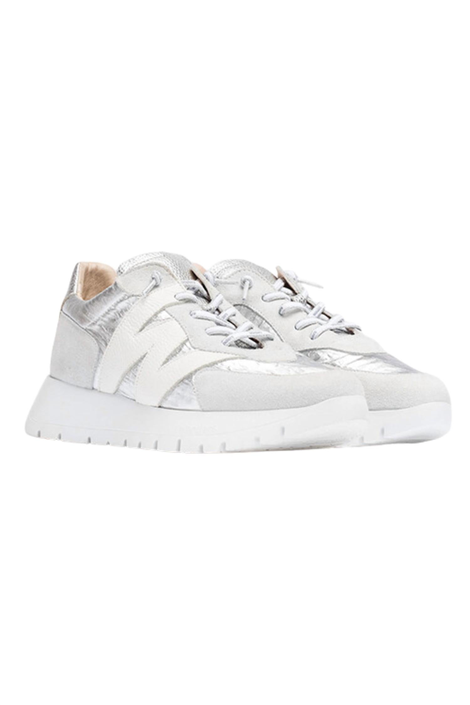 Discover the Wonders Slip On Trainer Sneakers, where fashion meets function in a celestial blanco/plata colorway. Designed for easy wear, these sneakers feature elastic laces and a round toe shape, perfect for an effortless streetwear look. The removable MemoryGel insole ensures comfort, while the WondersFly™ sole offers exceptional lightness with each step. Ideal for vacation wear, these wedge heel sneakers are crafted to enhance your spring wardrobe with their chic style.